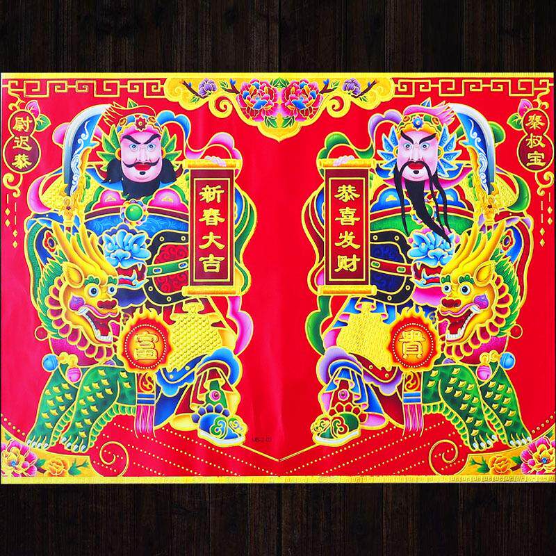 Bronzing painting stickers New Year Zhang Fu character large flying stickers door god PCN stickers door 2022 couplet year of the tiger stickers fortune