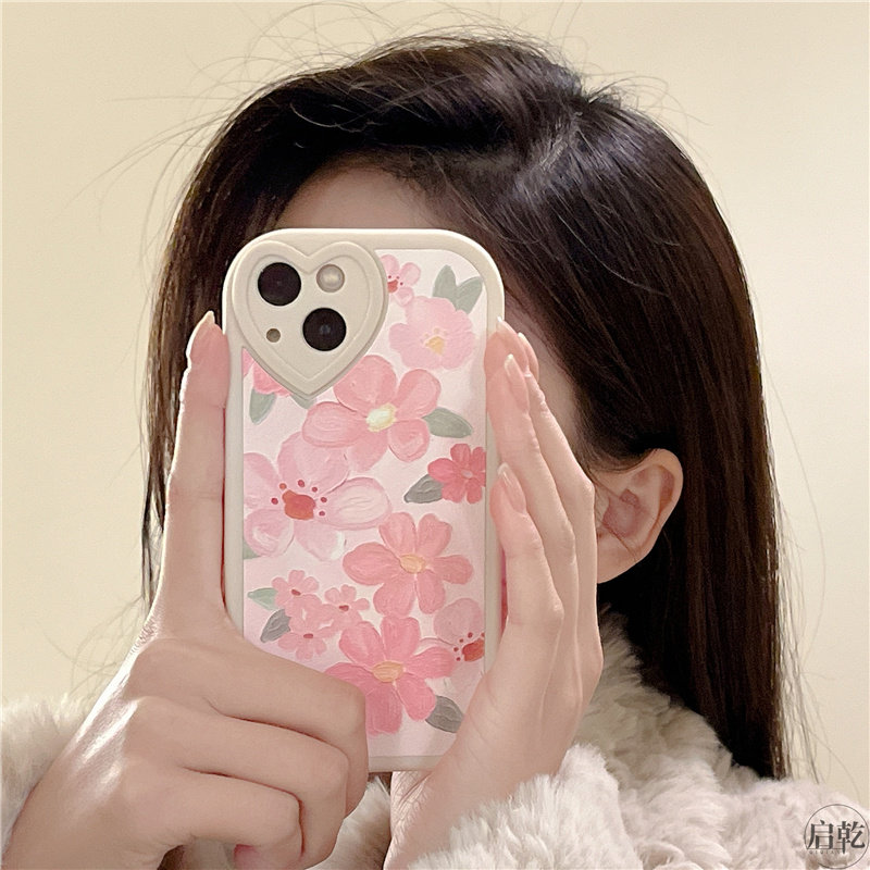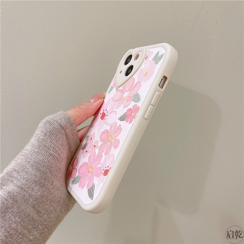 Pink oil painting flowers iphone13 mobile phone protective shell suitable for apple 13promax silicone gel 12 11 protective sheath xr xsmax pink young girl hearts 8plus7