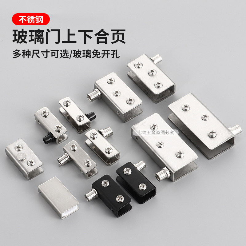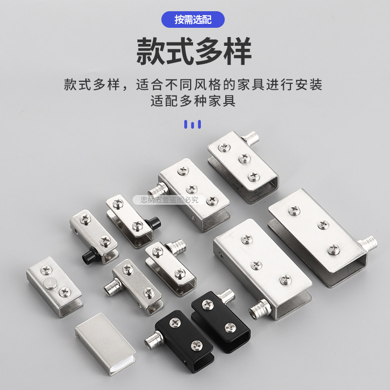 Black glass clip stainless steel cabinet display cabinet door and clamping cabinet glass hinge door shaft small axis