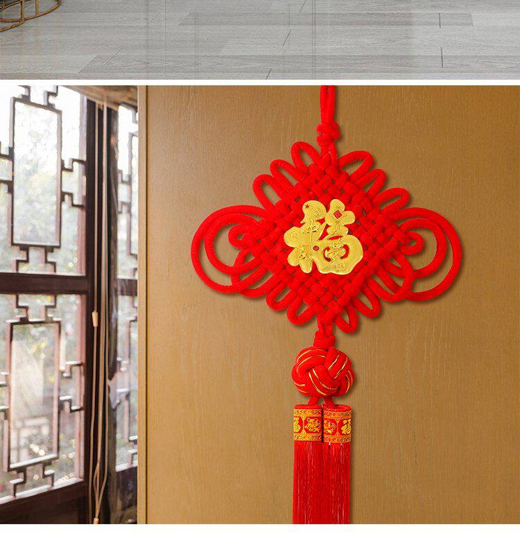 New Year decorations Chinese knot decorated living room Large number of fu characters New Chinese New Year Spring Festival arrangements Xiaoxuan Guan Qiao relocating decoration