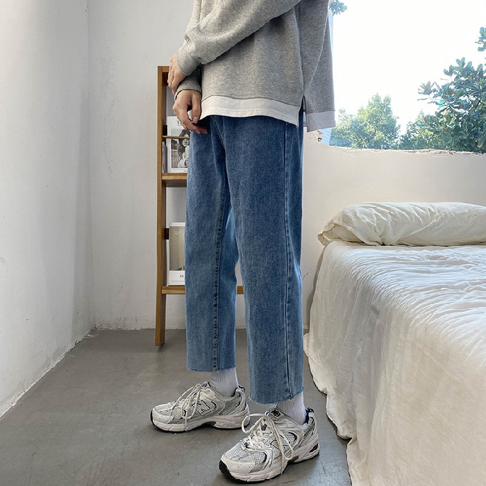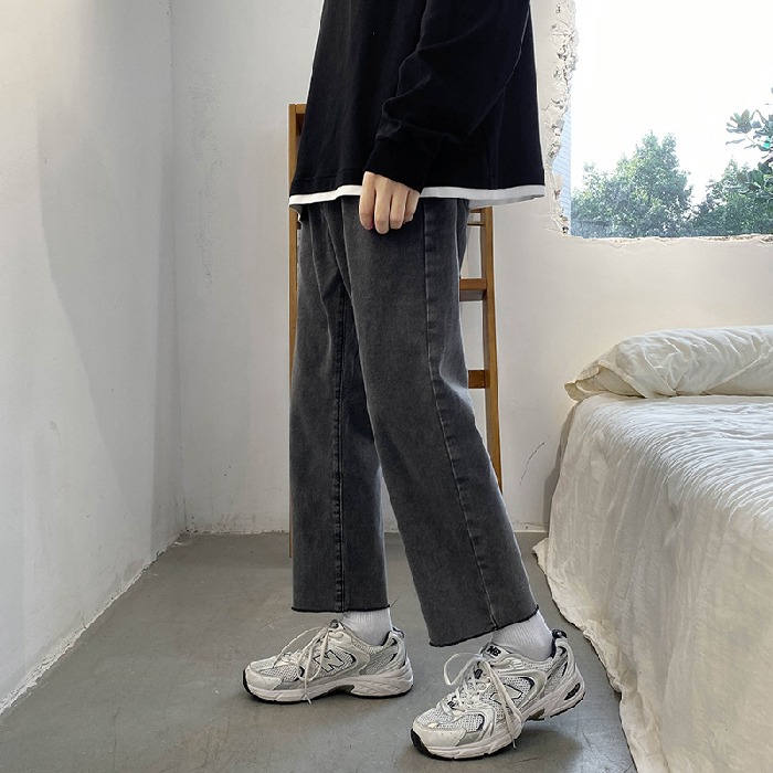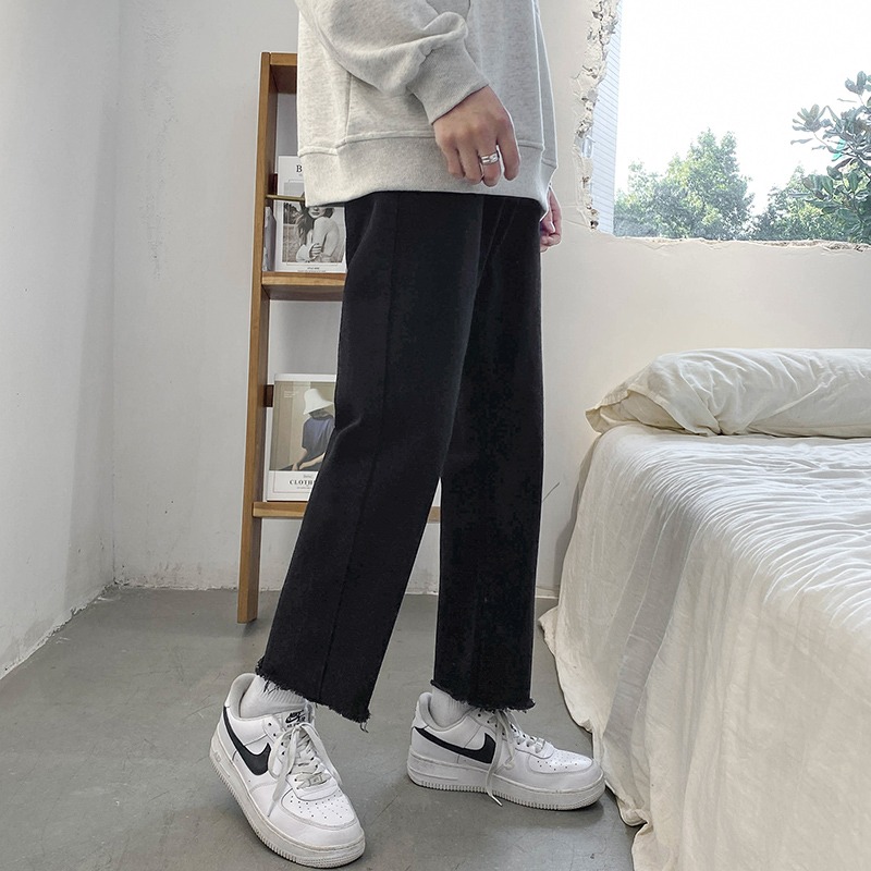 Straight cylinder small sub jeans female black display slim 100 lap 90% High waist pear-shaped stature wool side pants Chains