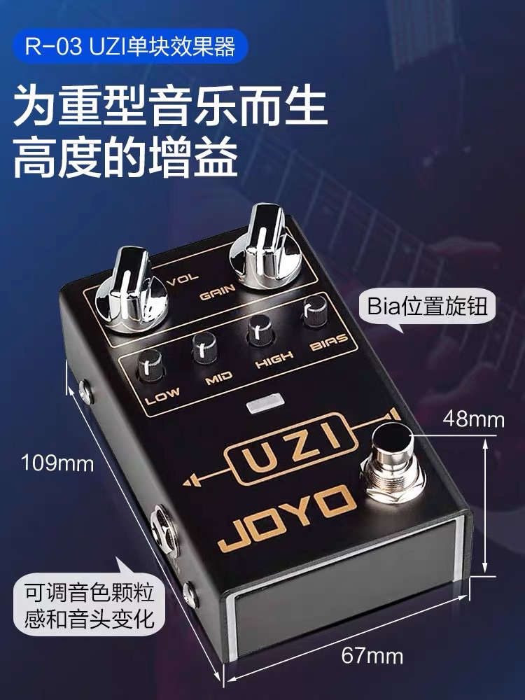 JOYO Zhuo Le R03 R-03 UZI electric guitar single block effect device distortion overload heavy metal high gain Bias
