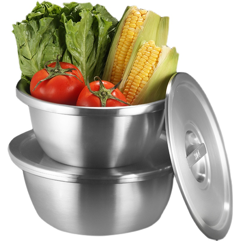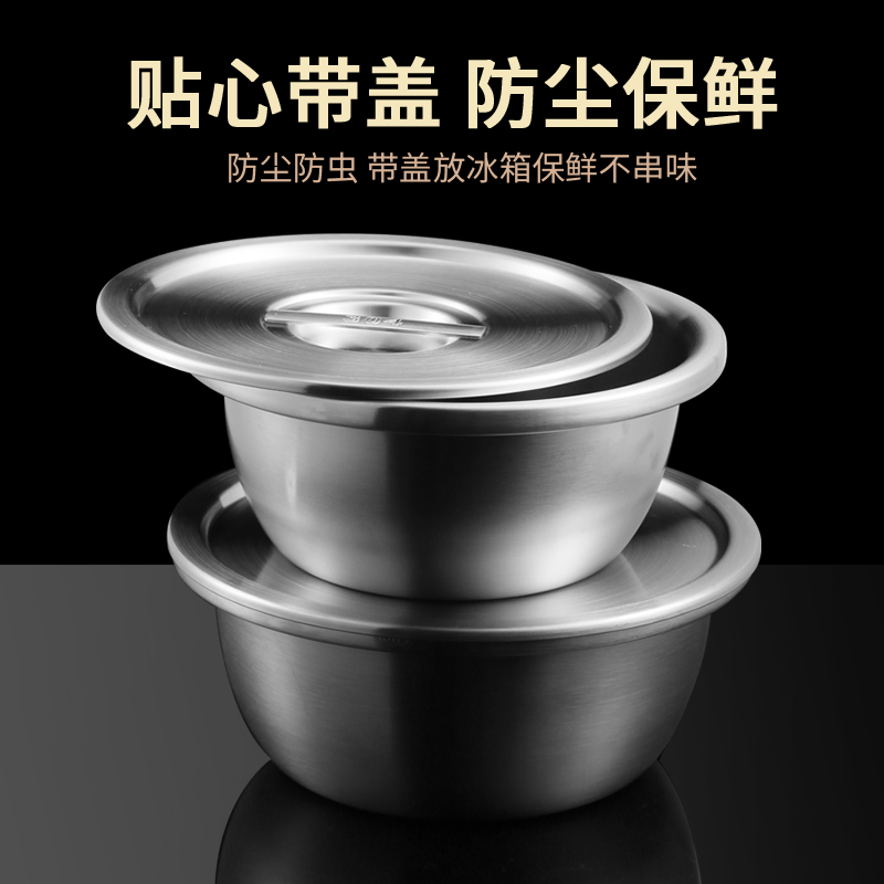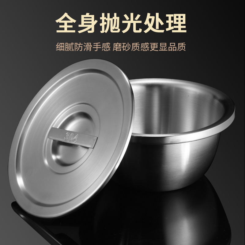 304 stainless steel pelvic food grade egg basin household kitchen basin lid thicker pork pot mixed dish cuisine basin