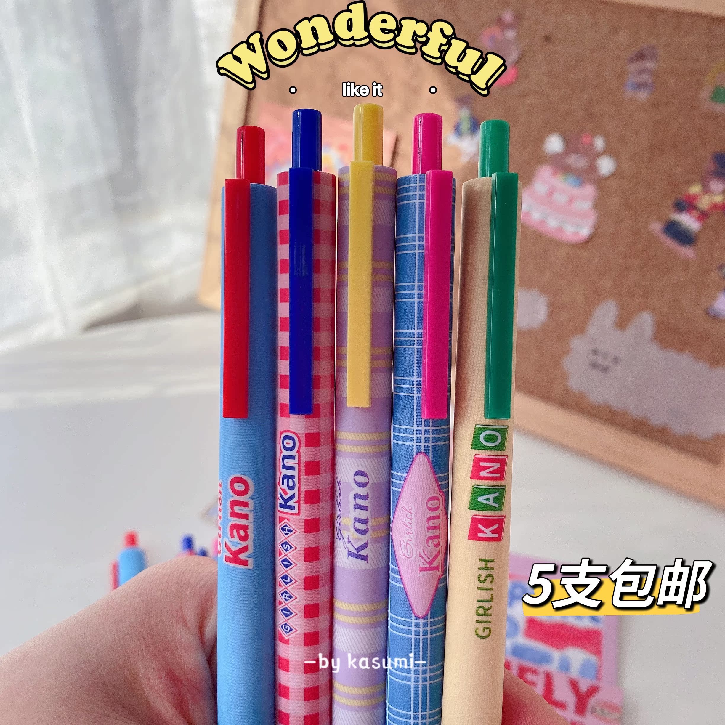 Blue and red colour 1 blue and red plate colour 1 pink blue plate colour 1 yellow-green colour 1 yellow-purple plate colour 1 set of 5 retro-coloured pen