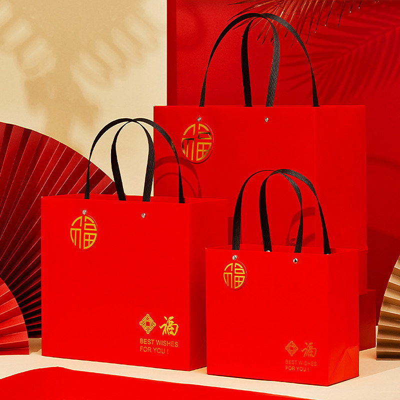 2022 New Year's gift bag Hand upscale Courtesy Rivet Bag Thickened National Wind White Cardboard BRIEF GIFT BAG