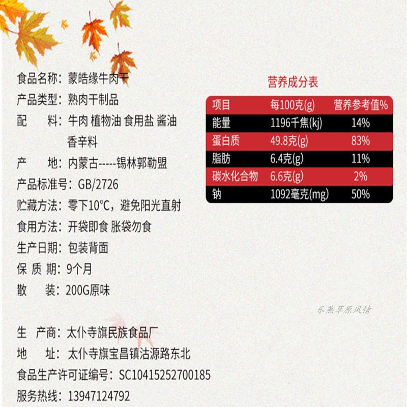 Inner Mongolia ultra-dry air-dried beef jerky original cumin spicy Meng Haoyuan 200g zero added hand-shredded beef strips