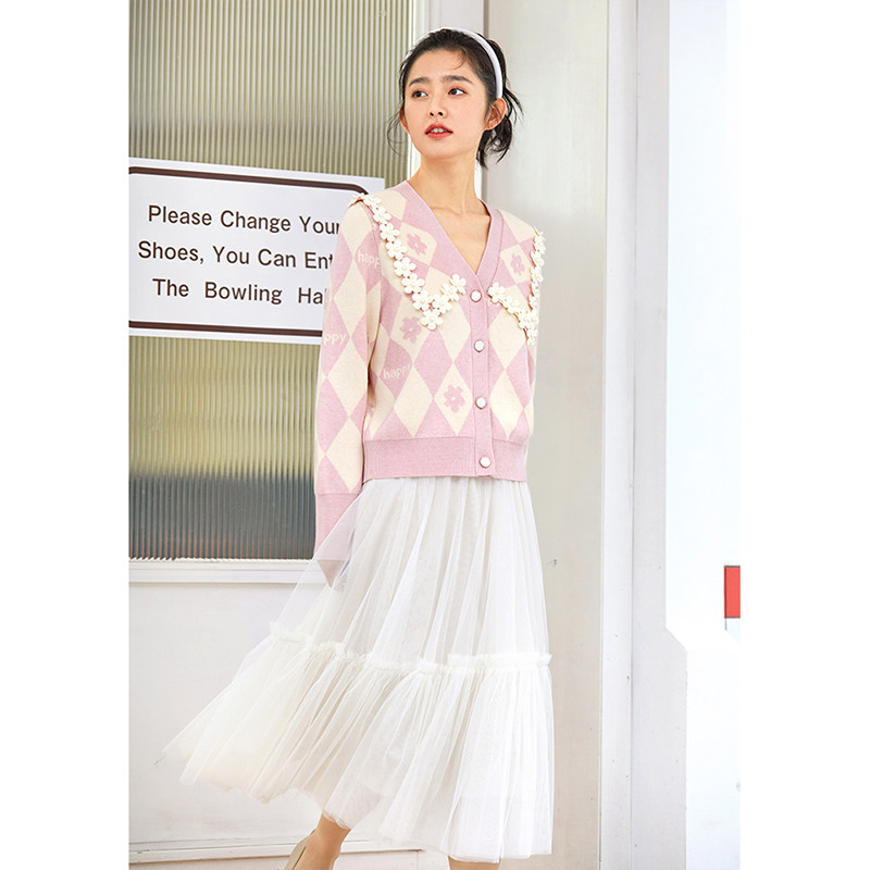 Red Cuff Jacquard Doll Collar Sweater Spring 2022 New Women's Dress Magnitwear Knitwear Clear Cold Tie Clothes Woman