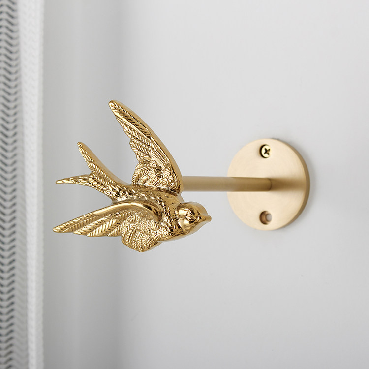 Nordic brass curtain hook swallow hook hall gold non-perforated retro decoration creative light luxury wall hook