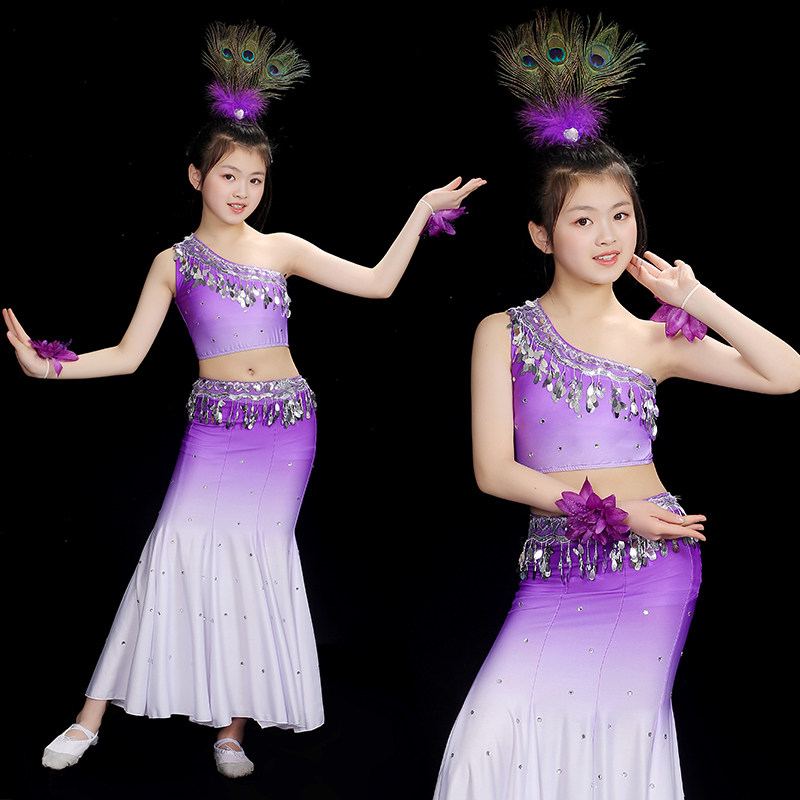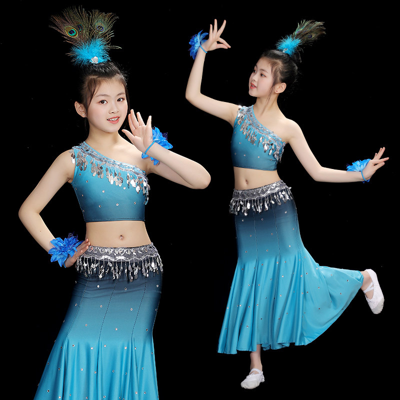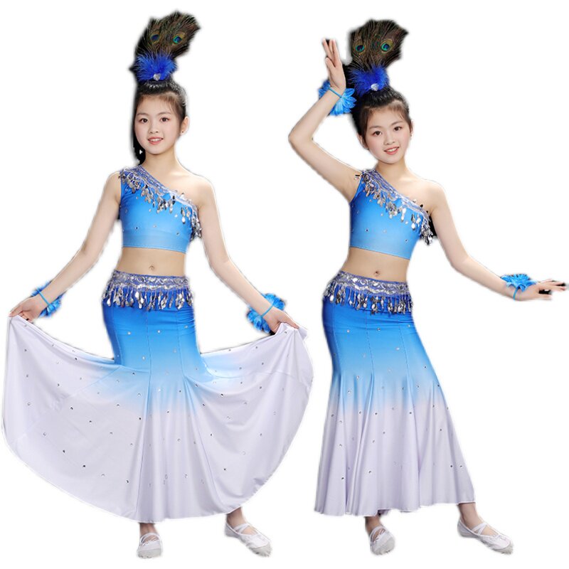 New children's Dai dance costumes stretch peacock dance costumes girls children's Dai fishtail skirt costumes