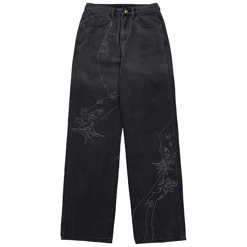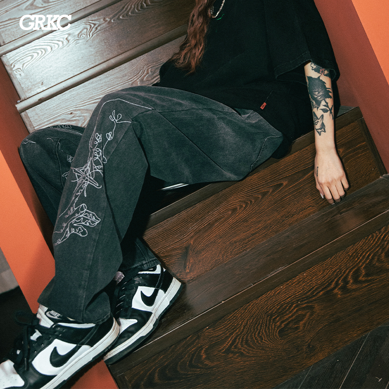 GRKC Genesis Gradual Layers Denim Pants National Tide Card Street Hip Hop Fashion Couple Men And Women Loose Casual Long Pants