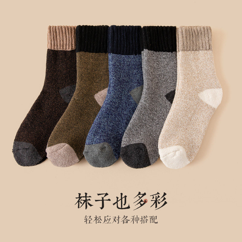 Wool Socks Thickened Socks Male Winter Plus Suede Super-Thick Warm Men Midcylinder Northeast Winter Tethicker Cashmere Cotton Socks