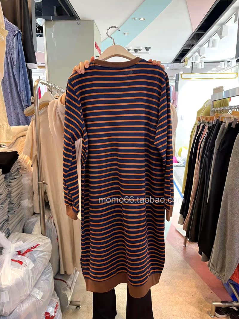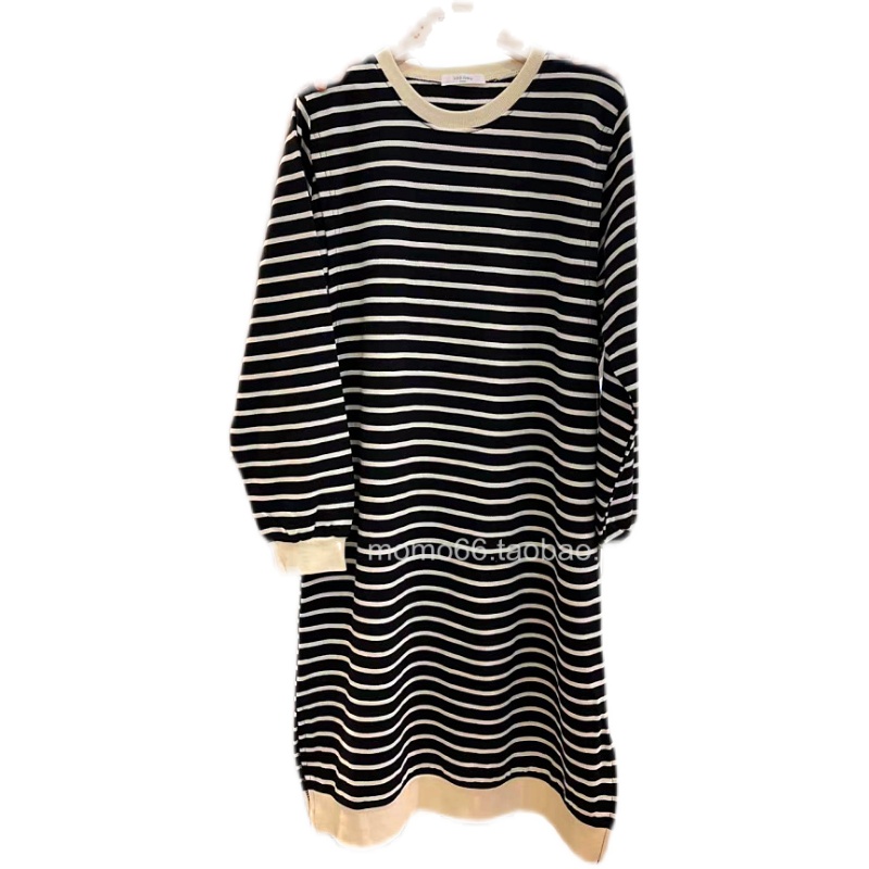 South Korea Dongdaemun Pregnancy Woman Dress 21 Winter Grinding Thickened Collage Striped Loose Necroe in a Long Edition T-shirt