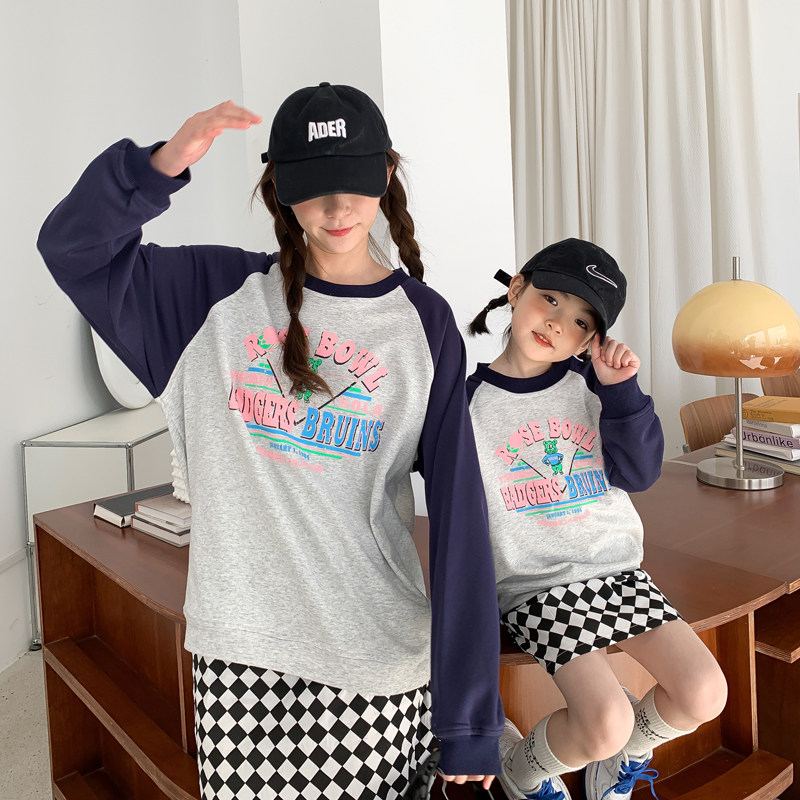 Online Red Kiss Costume Spring Dress 2022 New Tide Fried Street Mother Mother-daughter Dress High-end Foreign Pie Cartoon Set Head Casual Blouse
