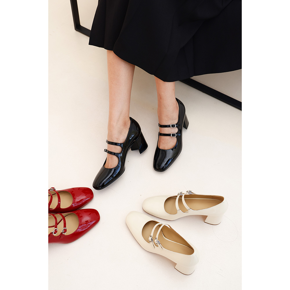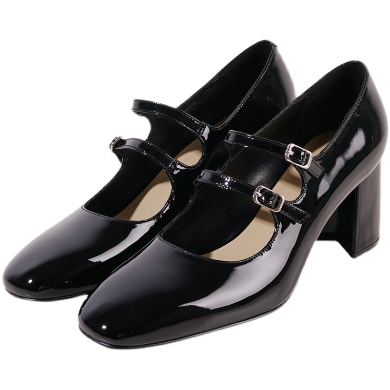 IORE×GS Handmade Cow Paint Leather Cough Heel Mary Jen 2022 New Round Shallow Single Shoes High Heels