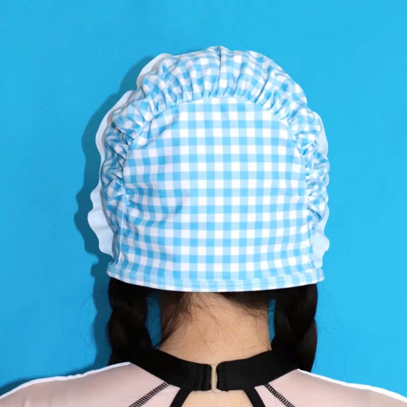 Lace blue gingham swimming cap women's lace-up comfortable not strangling head hot spring beach vacation sunscreen breathable swimming cap