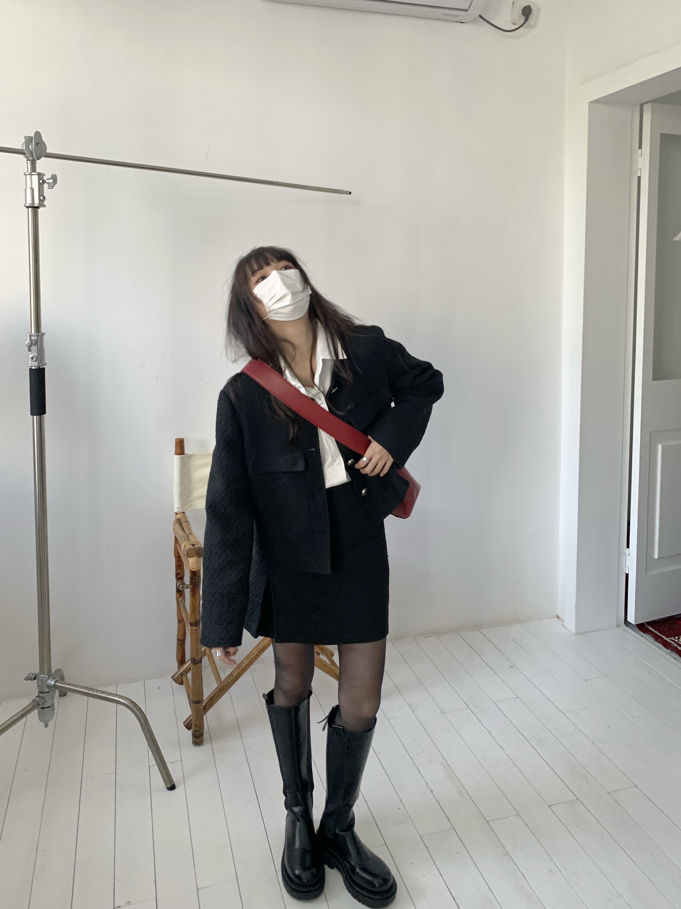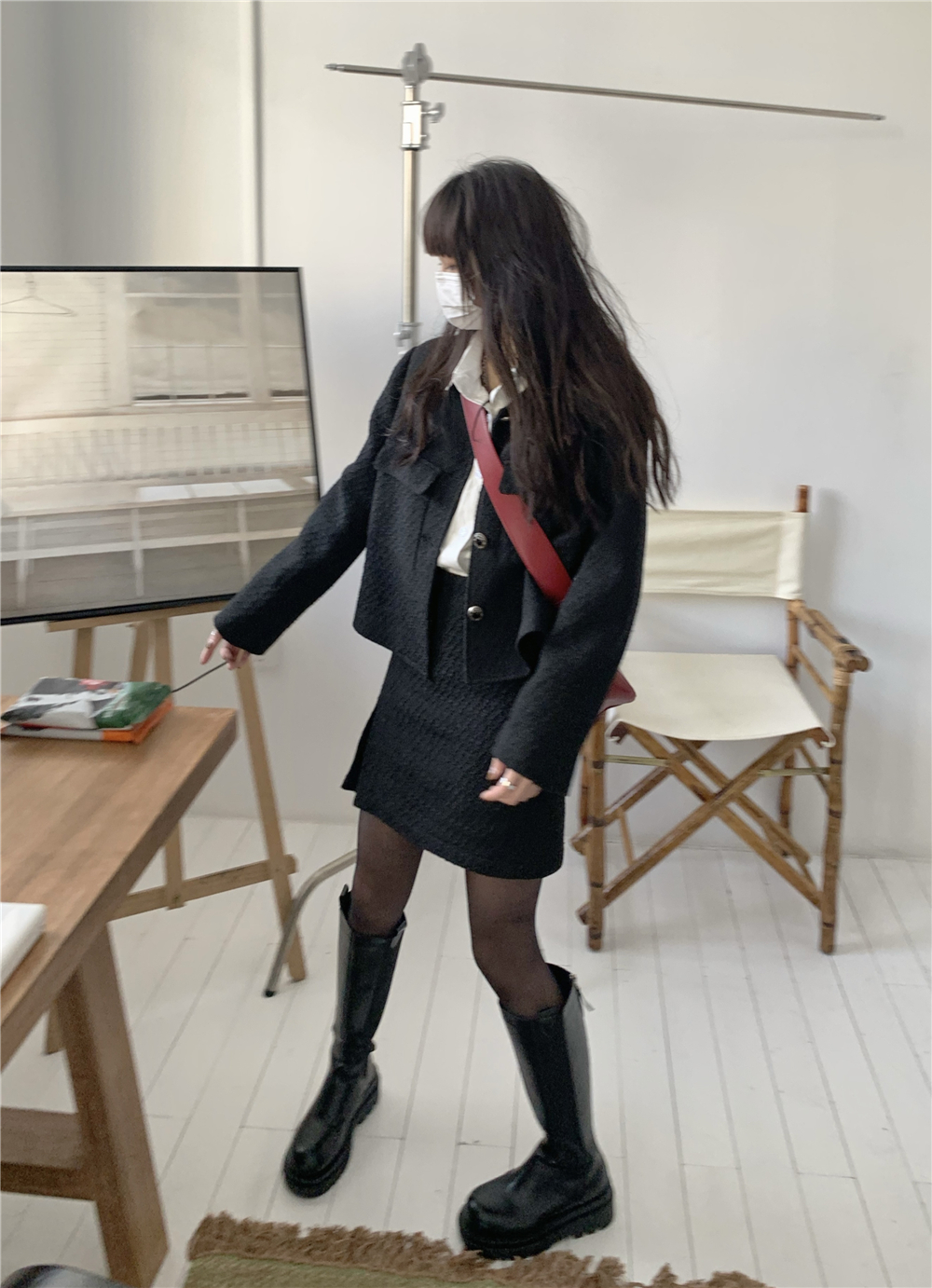 Wilderness House Herben Small Fragrant Wind Weave Suit 2022 College Wind High waist and half body A short skirt Short coat female spring