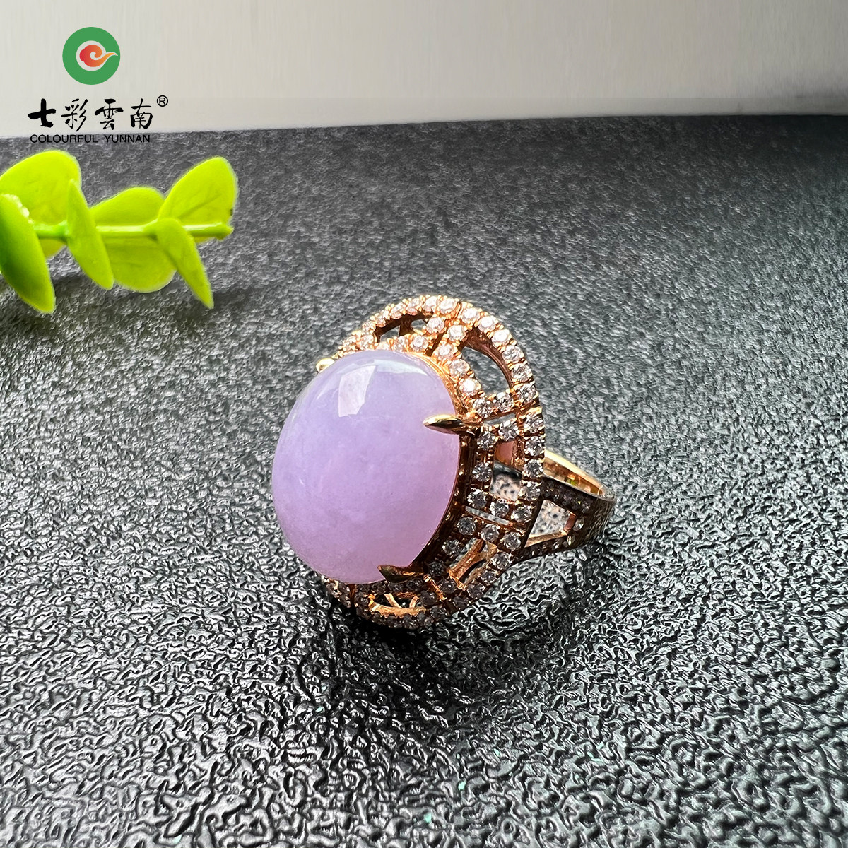 Color Yunnan Myanmar A - cargo natural emerald belt certificate 18k gold inlaid glutinous ice violet ring