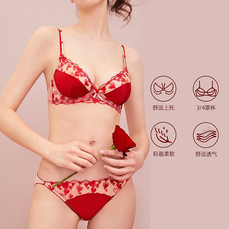 Curious Honeyls Sexy Lingerie Women's Summer Slim Big Chest Bra Suit Clairvoyons Caring Embroidered Bra