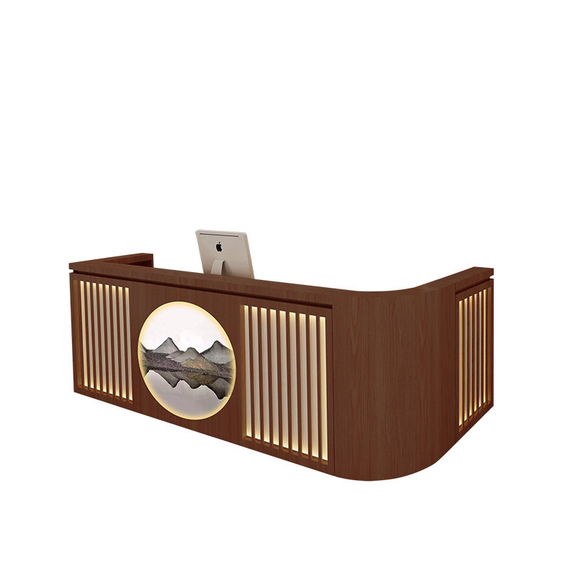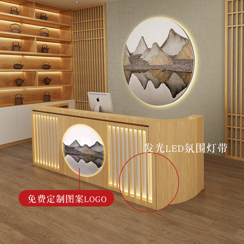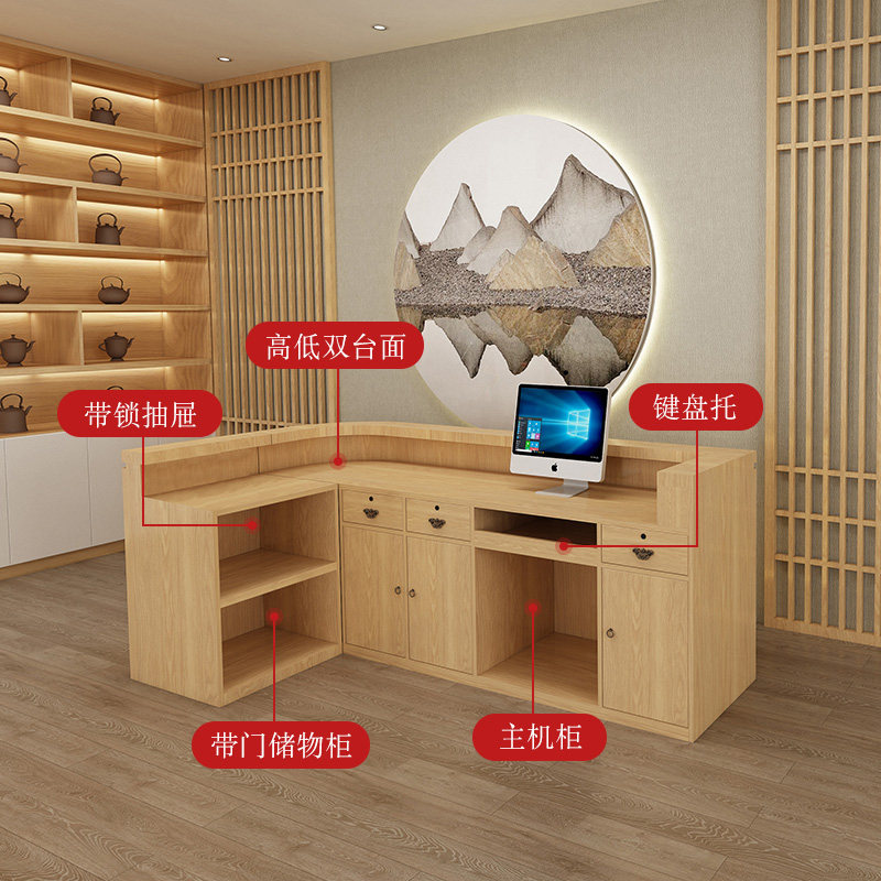 Retro cashier counter hotel dining room bar table Chinese-style health front desk company reception desk arc round corner customization