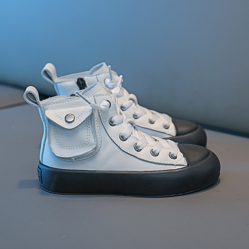 South Korea Fashion Girl Lace Genuine Leather Tide Shoes 2022 Spring Autumn New Boy Outside Wearing Breathable Comfort Flat Sole Shoes