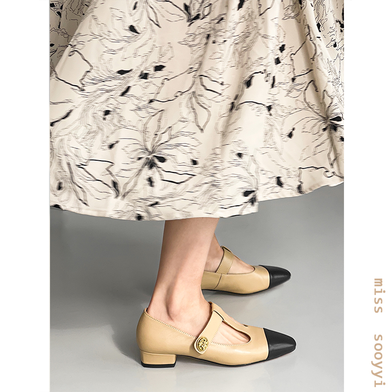 SRX - French vintage Mary shoes are small leather fragrance shoes shallow piece clay shoes
