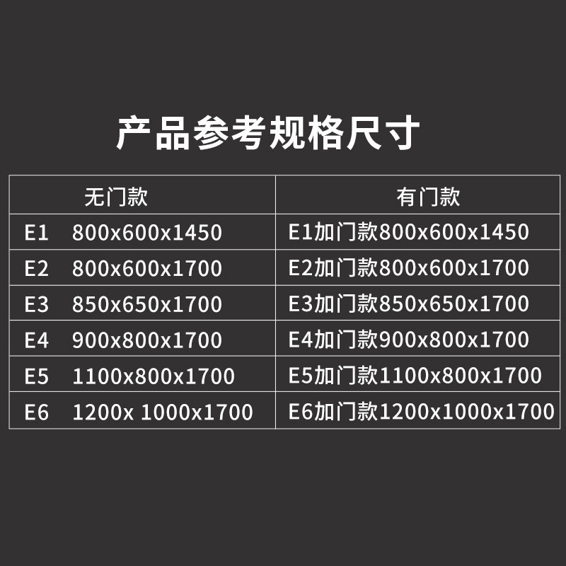 800 * 600 * 1450 without door 800 * 600 * 1700 without door 850 * 650 * 1700 without door 900 * 800 * 1700 without door