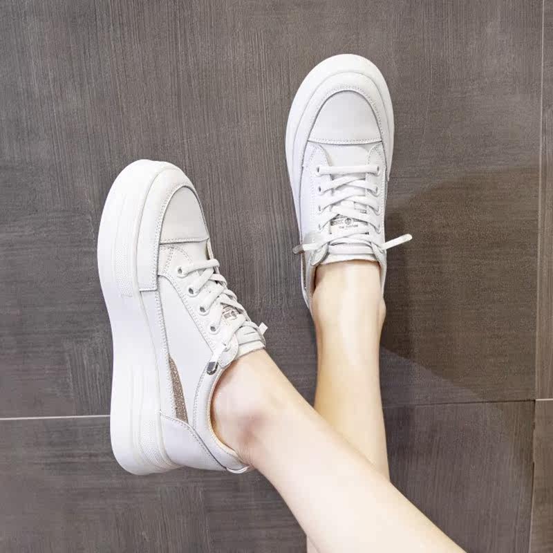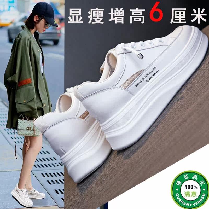Leather top layer cowhide inner heightening small white shoes women's sneakers breathable soft bottom all-match light travel sports casual shoes