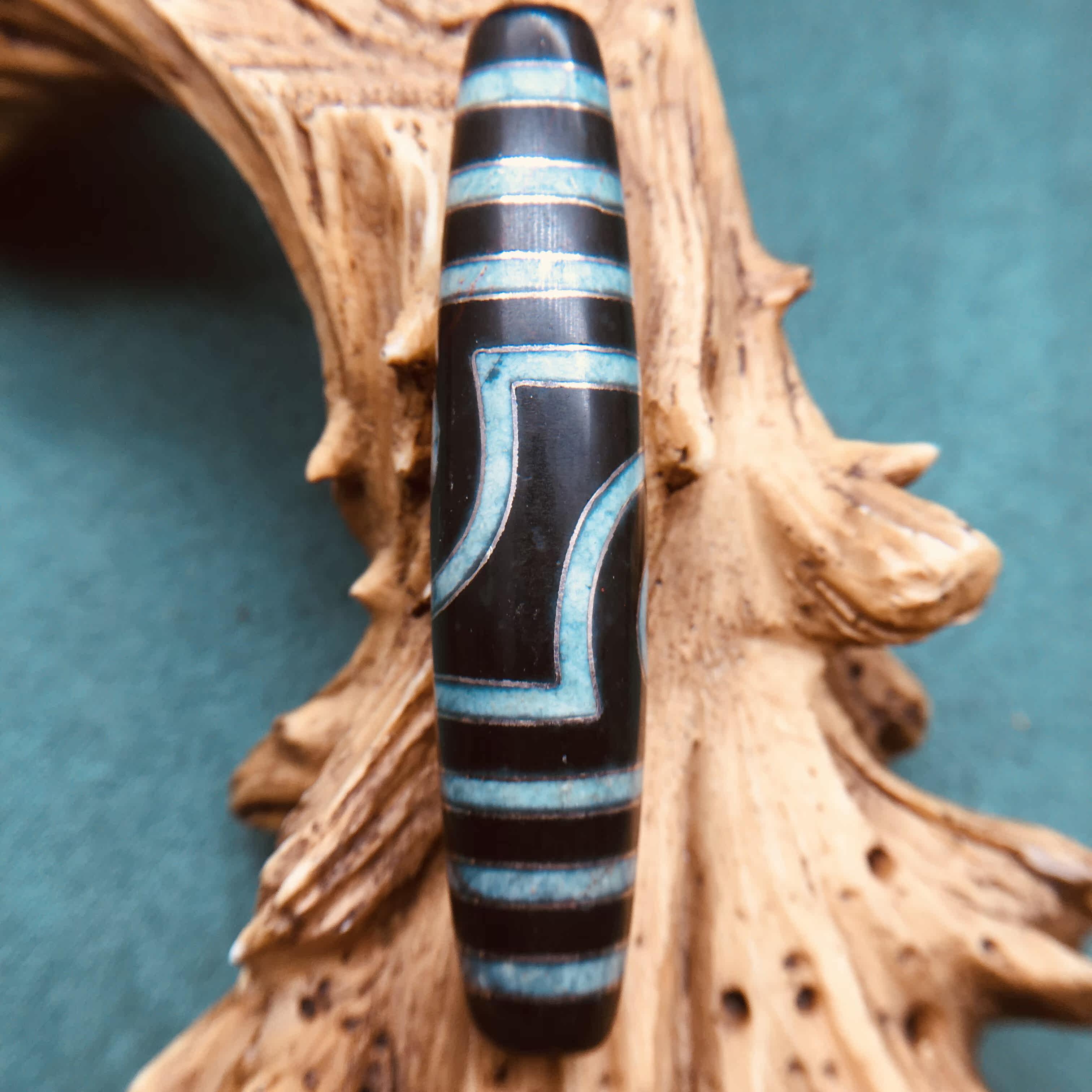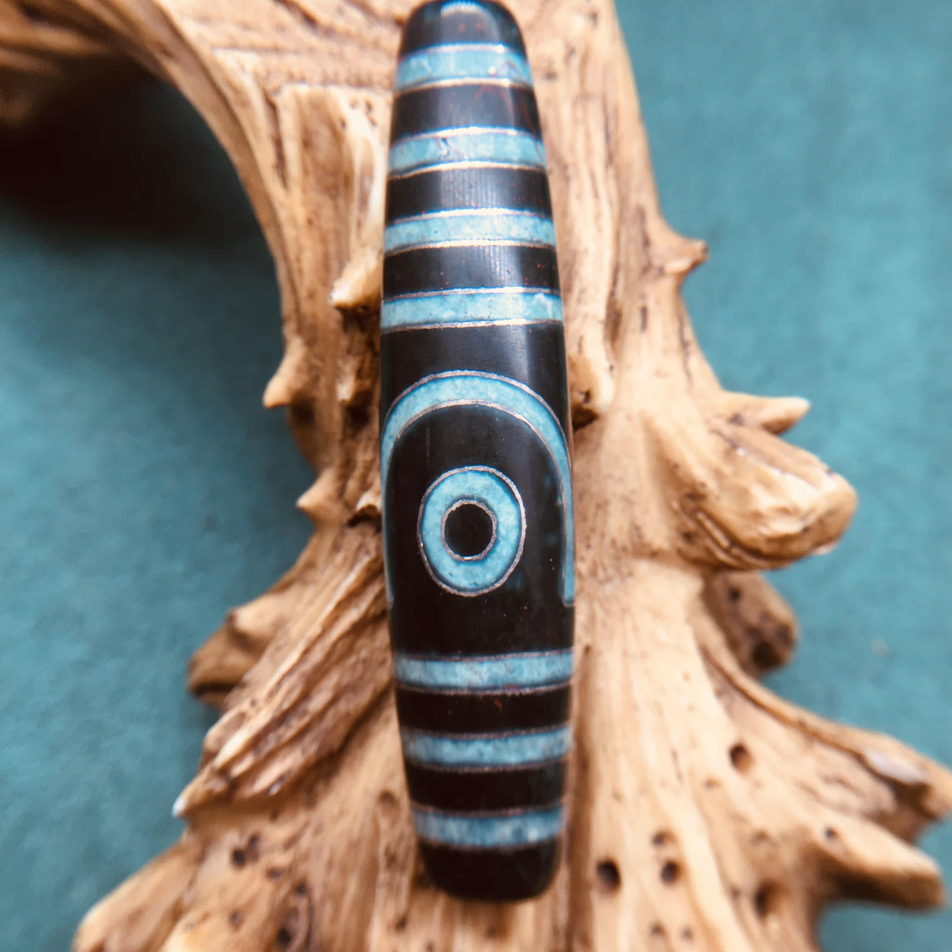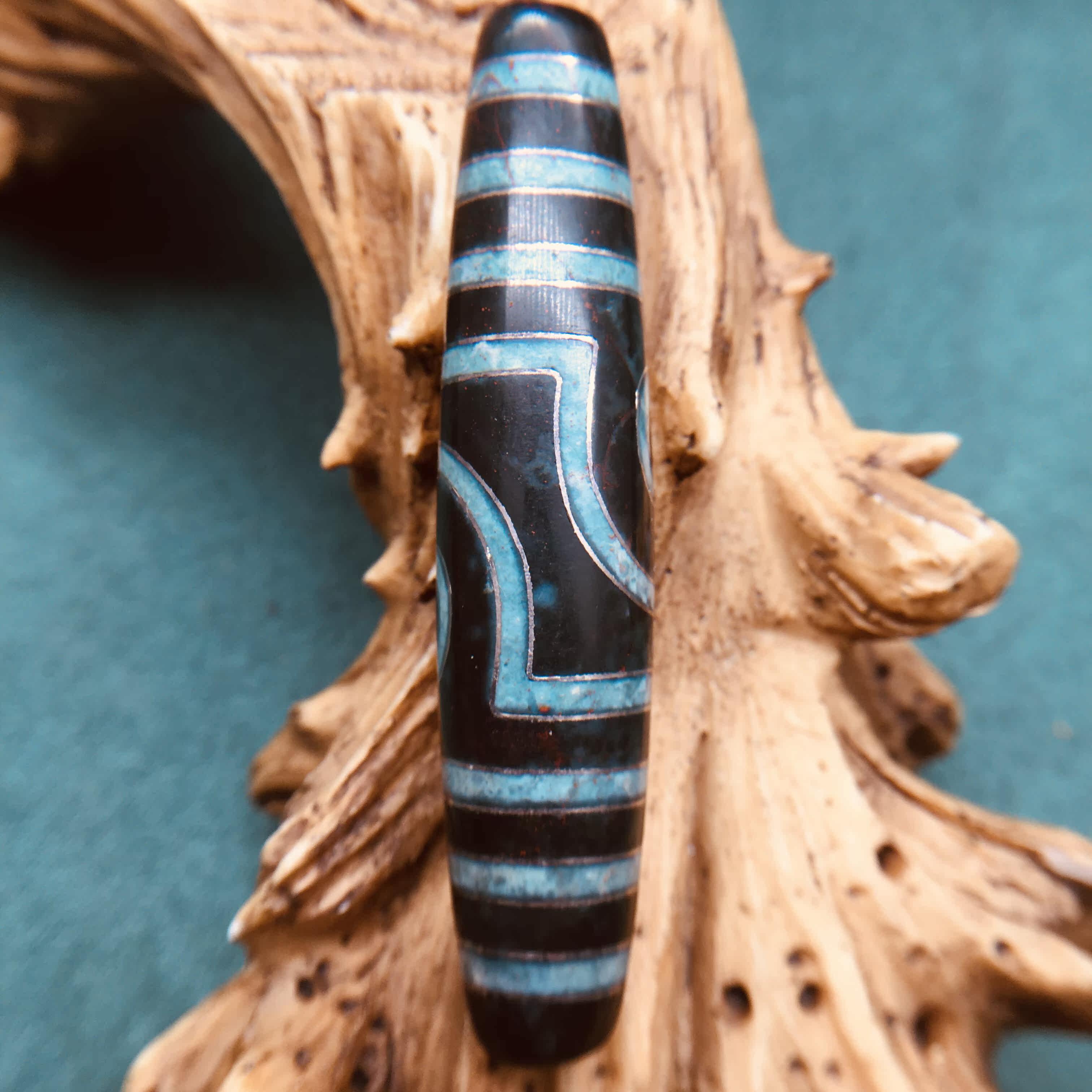 Boutique Tibetan Tibetan green leather inlaid two-eyed Xiangxiong heavenly stone nine-inch shale full of cinnabar pendant pendant