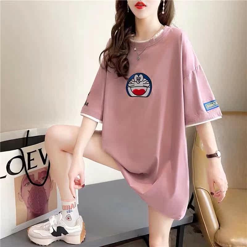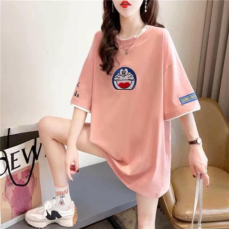 Pregnant women short sleeve t shirts 2022 new network red large size loose medium and long version design sense of the small pregnant woman tops