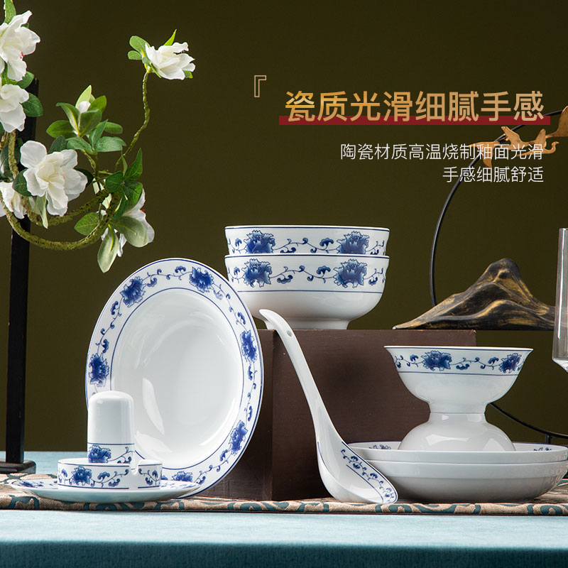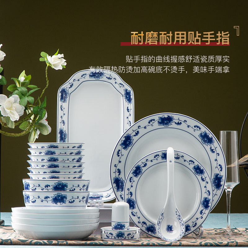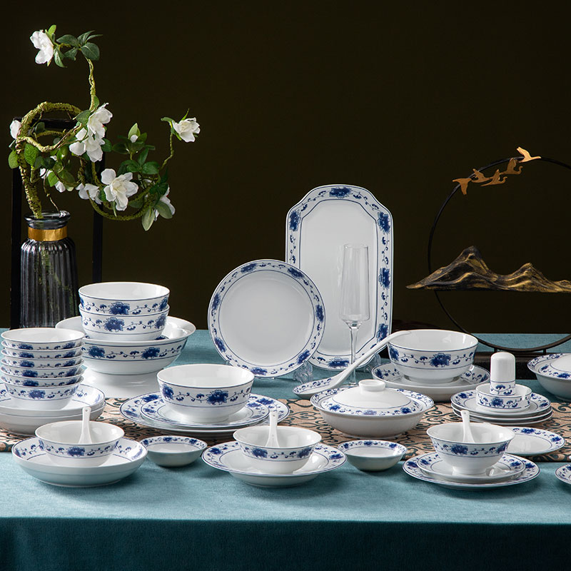 Red Leaf Official Flagship Store full Han full XI Dish Suit Home Green Flower Porcelain Chinese Cutlery High-end Gift-Courtesy Porcelain