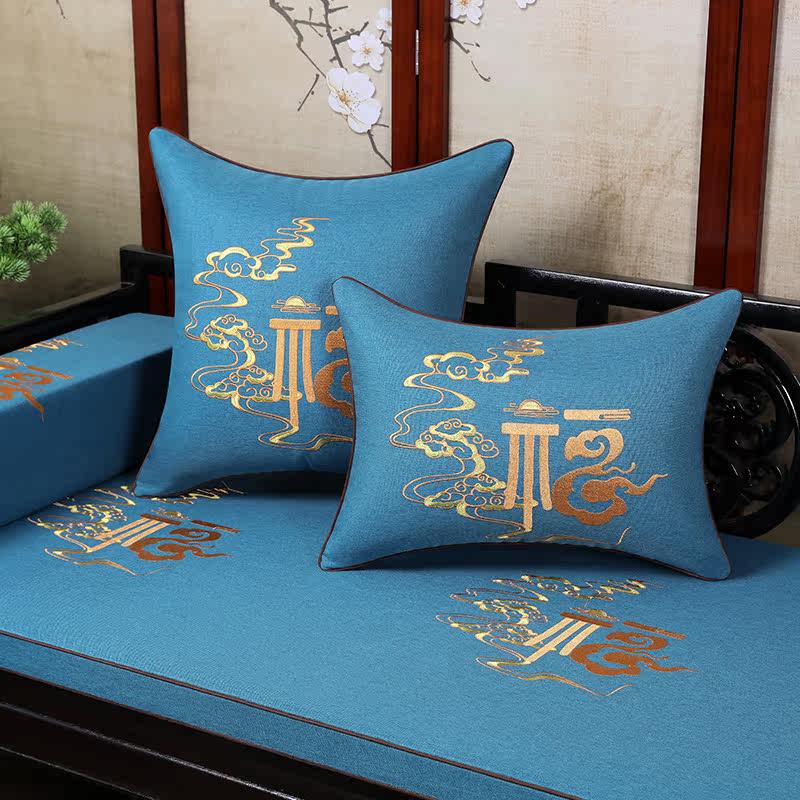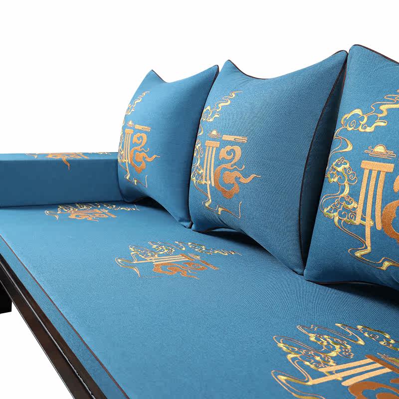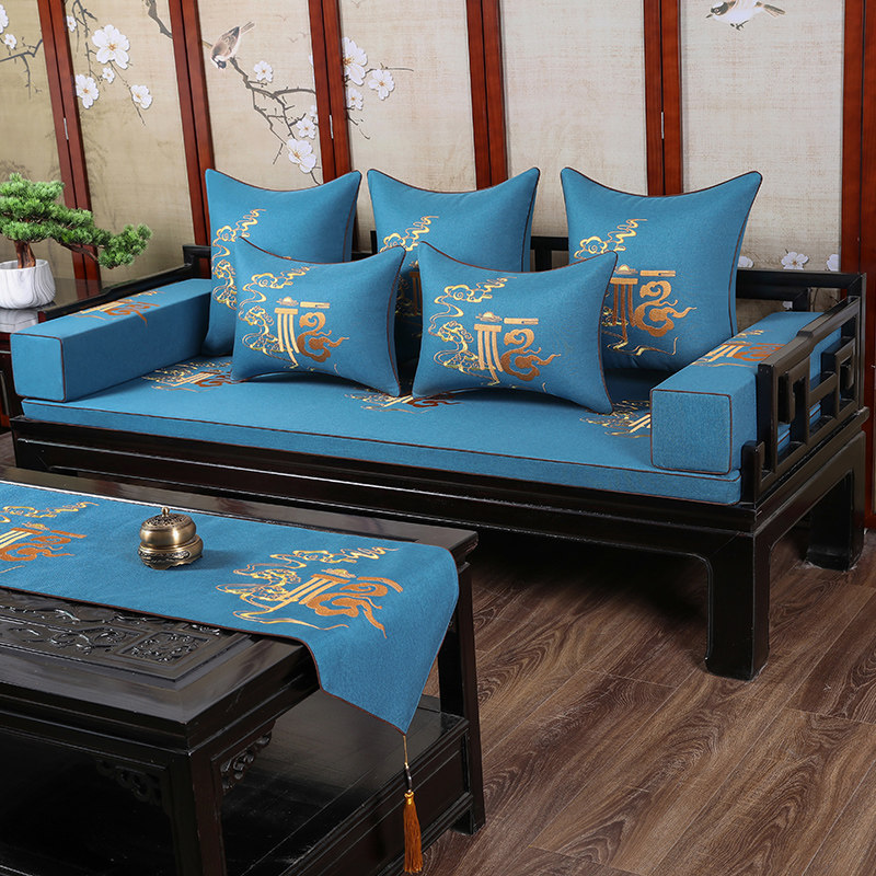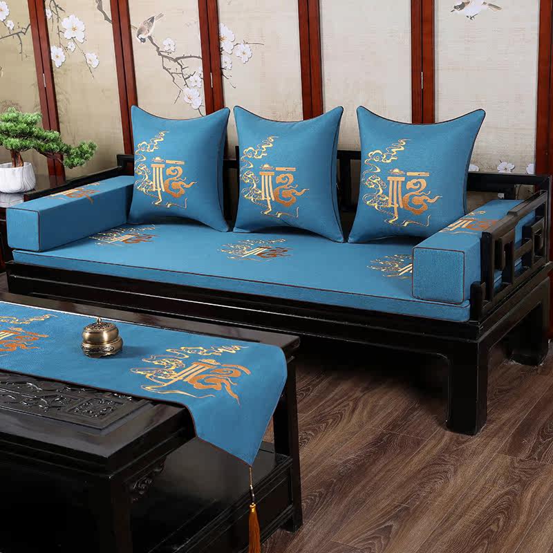 New Chinese solid wood furniture Luohan bed cover cotton linen embroidery brown cushion latex mahogany sofa cushion non-slip custom