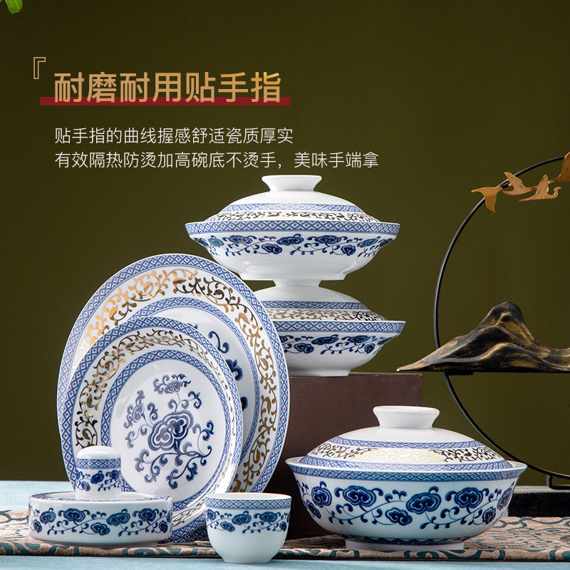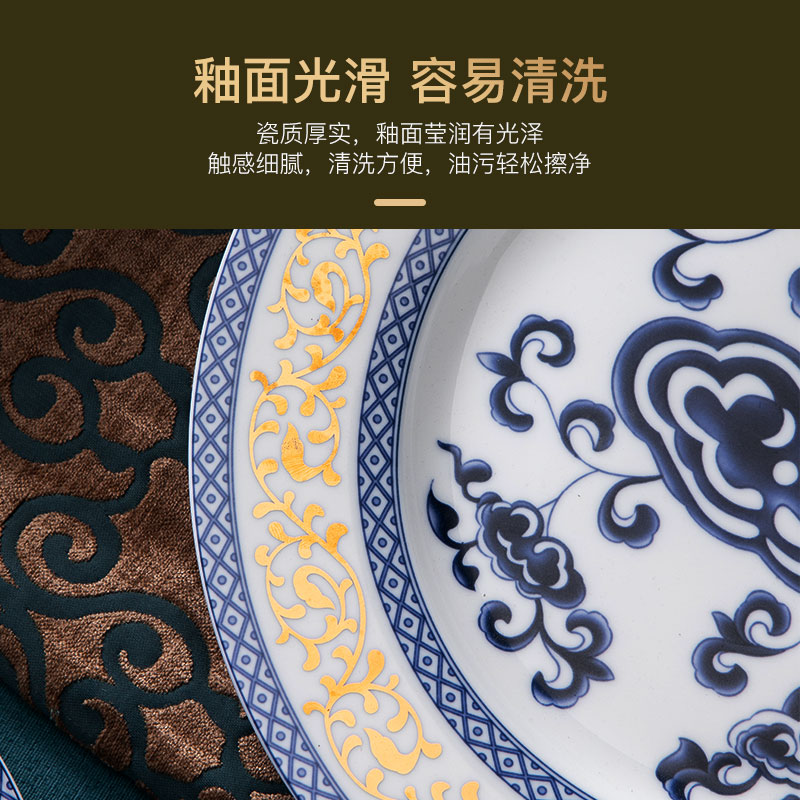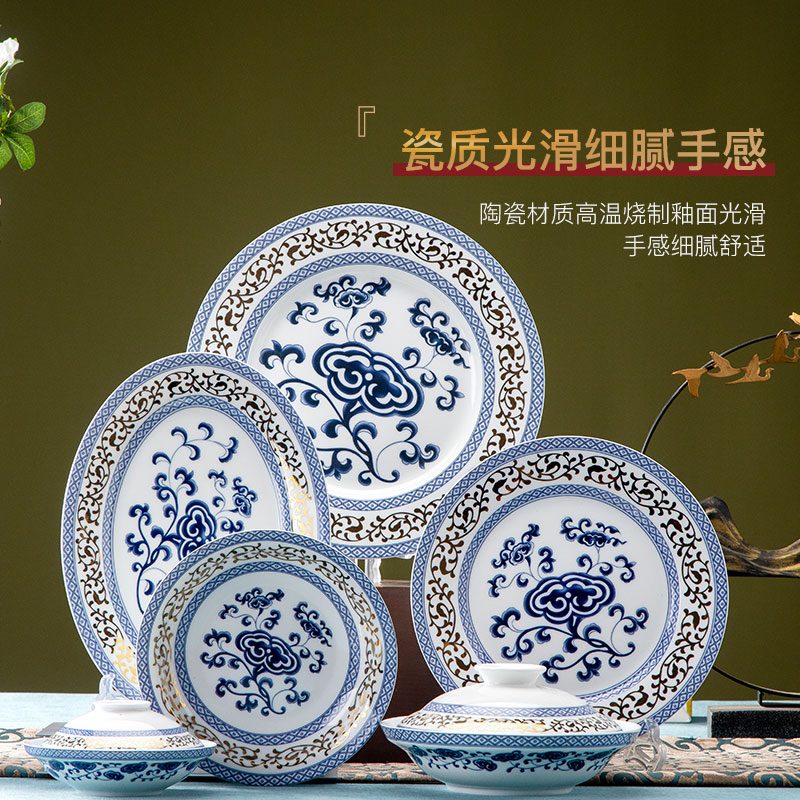 Hongye Porcelain Official Flagship Store 66 Gold Ruyi Dishes Set Home Chinese White Porcelain Tableware Jingdezhen