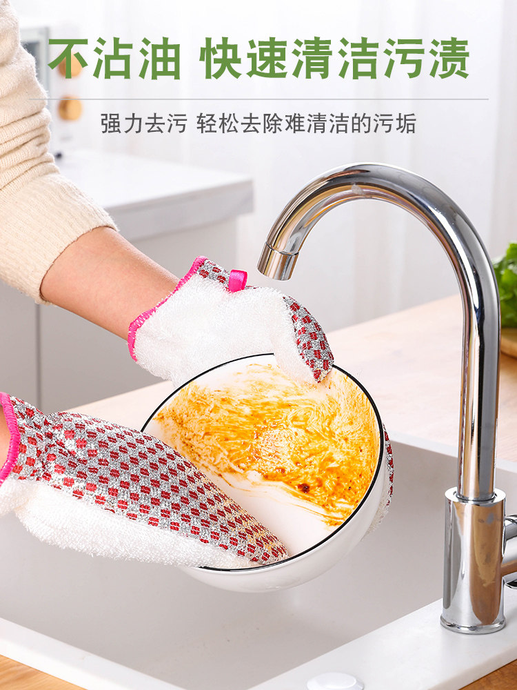 Dishwashing gloves female kitchen durable housework dishwashing artifact waterproof winter dishcloth bamboo fiber does not stick to oil stains