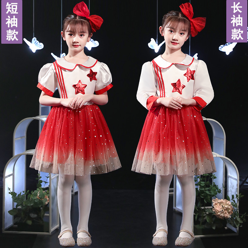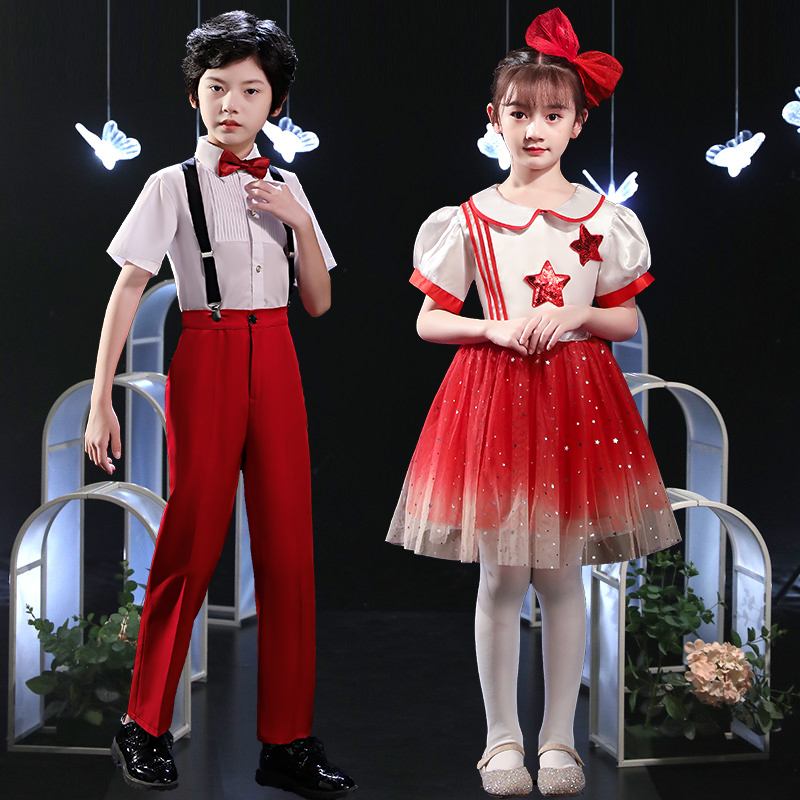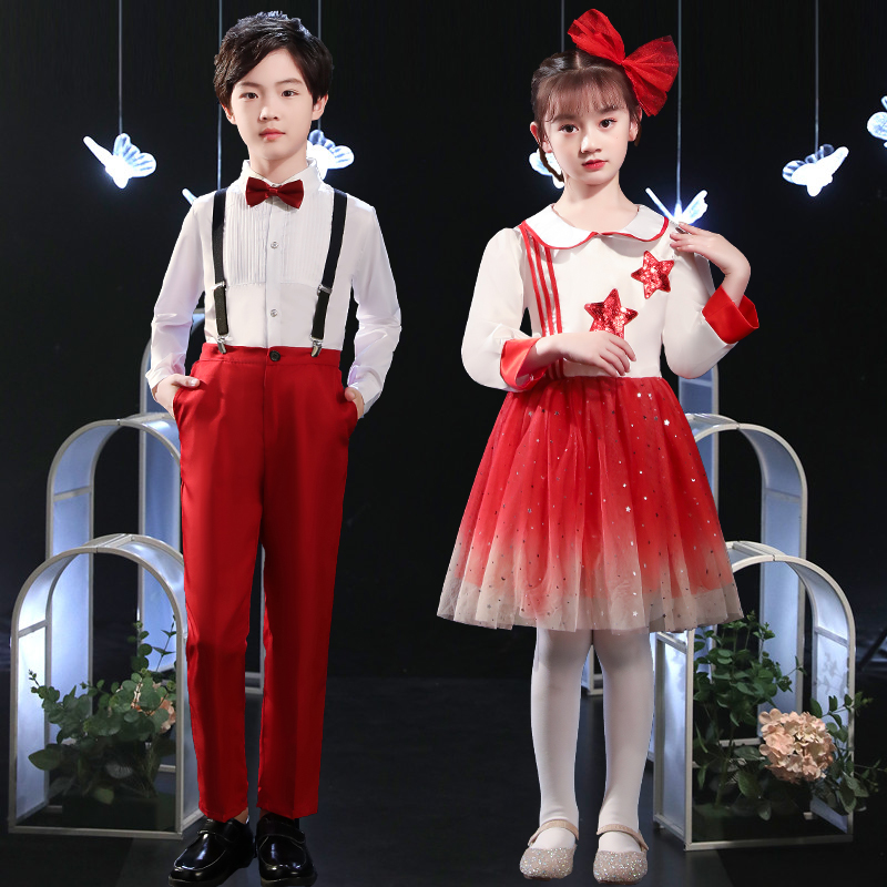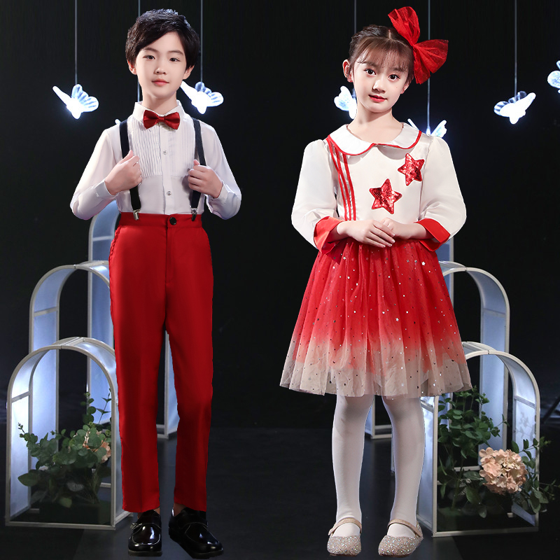 Children's chorus clothes primary and secondary school students cantata poetry recitation performance clothing red song competition dress childlike innocence to the party
