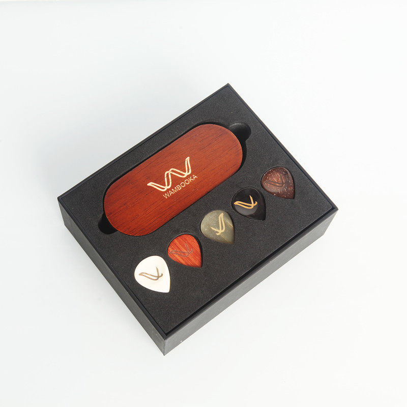 Coconut shell thin coconut shell thick hardwood thin hardwood thick transparent horn thin transparent horn thick black horn thin black horn thick bone thin bone thick original wood box (no pick) gift