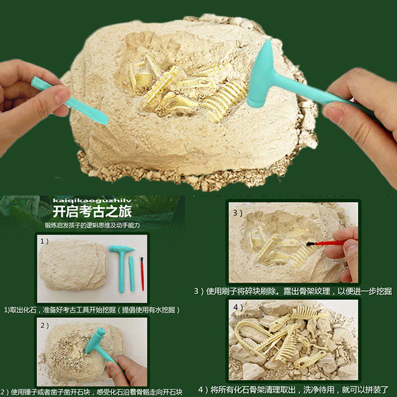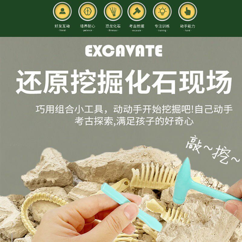 Children's dinosaur fossil archaeological excavation toy Tyrannosaurus Triceratops model boy digging treasure handmade material package