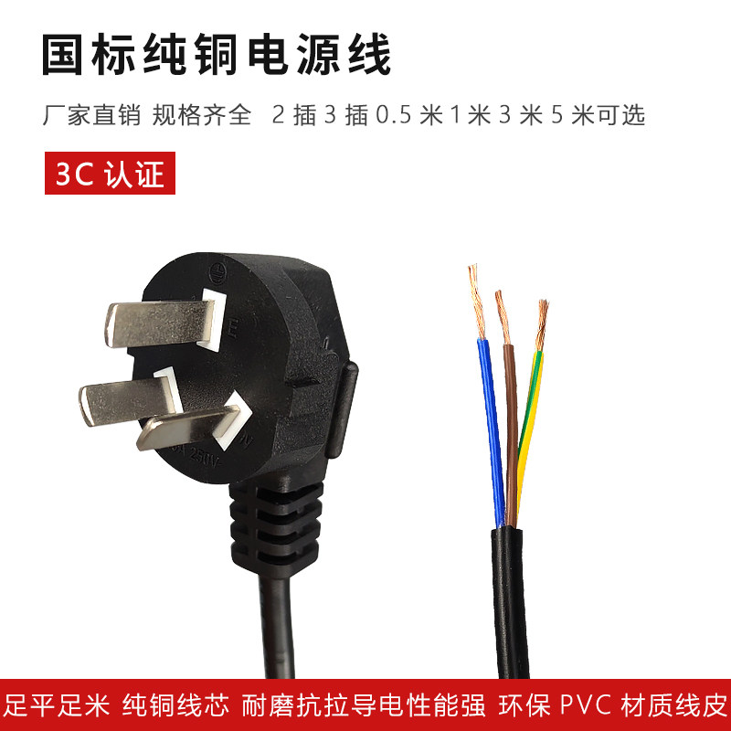 Pure copper national standard with wire plug power cord 3*0 75 square three plug power cord with plug three holes leak-proof