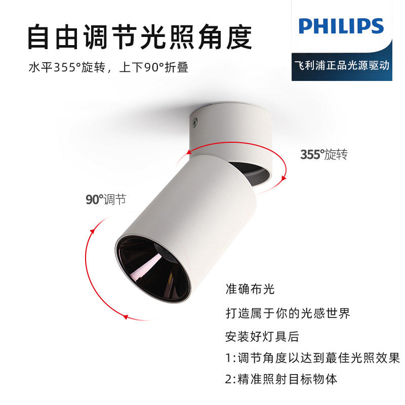 Philips surface-mounted spotlight adjustable angle home anti-glare wall washing single head round small ceiling folding rotating downlight