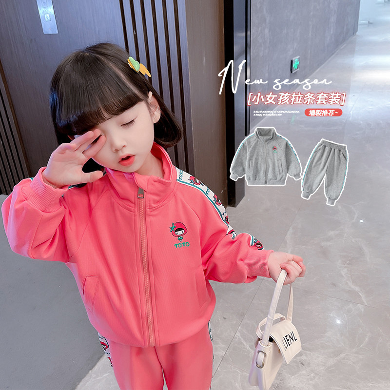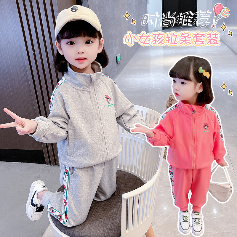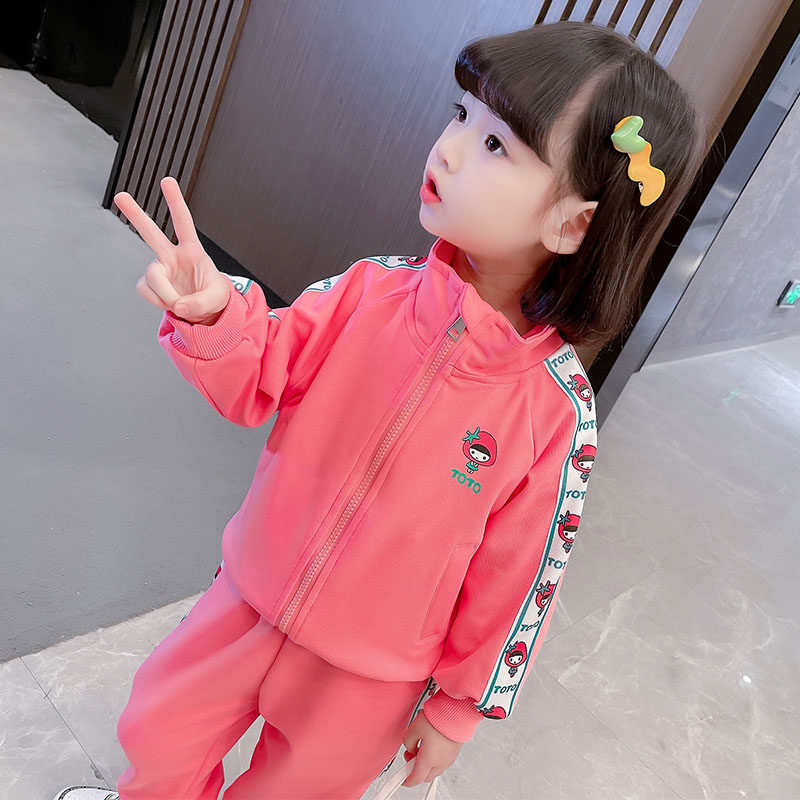 Girls sports suits spring and autumn clothing 2022 new casual children's long-sleeved cardigan two-piece set baby Korean children's clothing