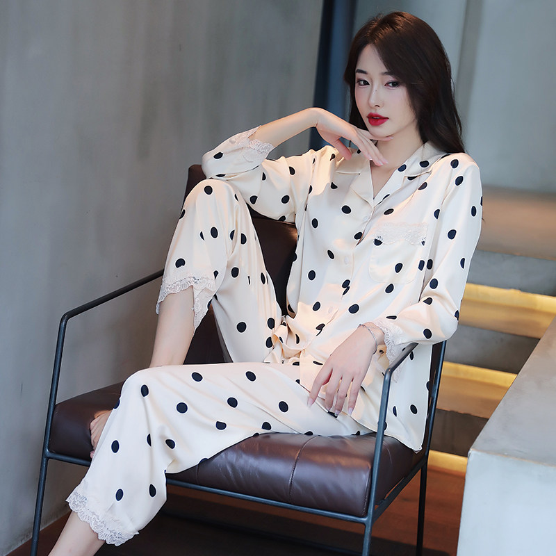 BAO WEN pajamas women's 2022 new two-piece suit spring and autumn models ice silk high-quality net red style sexy home clothes