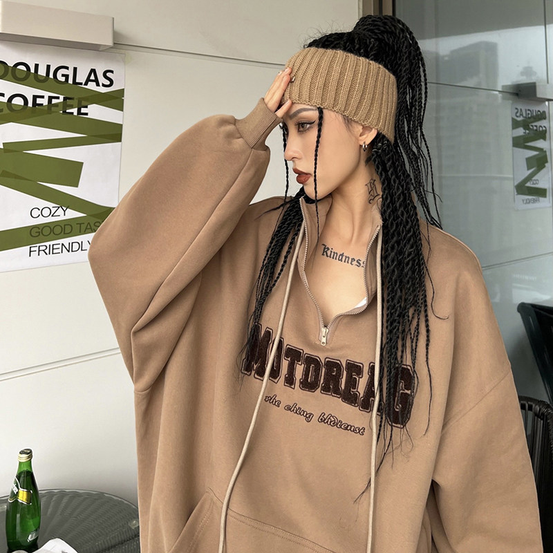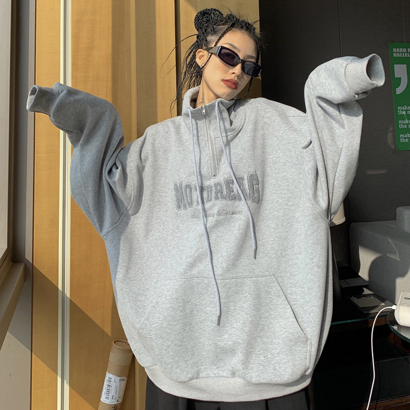 Why Mo American retro niche half turtleneck sweater women's 2022 new loose and lazy style couple's top trendy