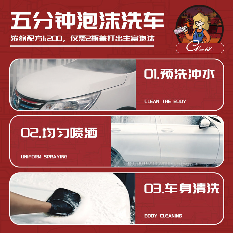 Car wash foam Glenby colorful girl neutral concentrated cleaning agent car decontamination car wash liquid car exterior cleaner