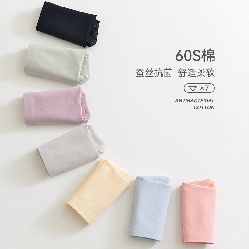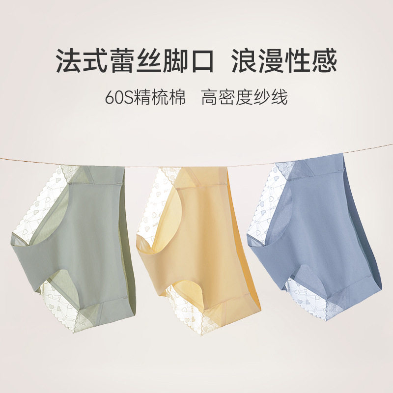 Lace edge underwear pure cotton women's middle waist seamless large size silk antibacterial crotch sweet girly briefs head