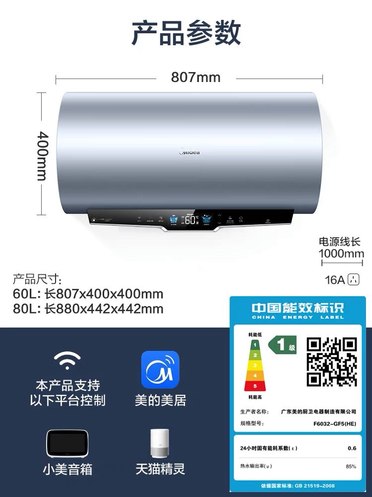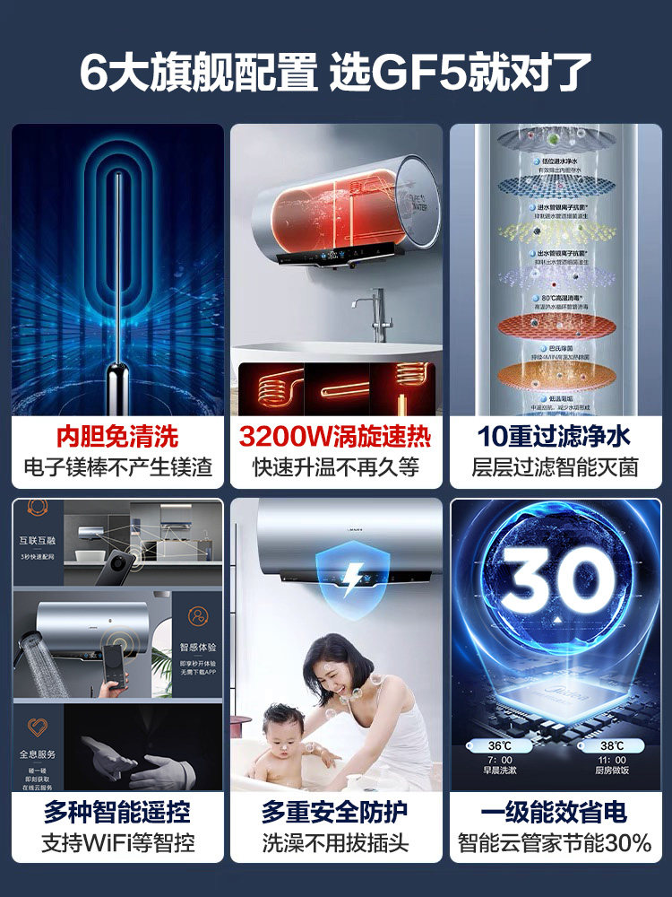Beauty electric water heater Electric home 60 80 liters water storage toilet water down power cut liner free of washing GF5