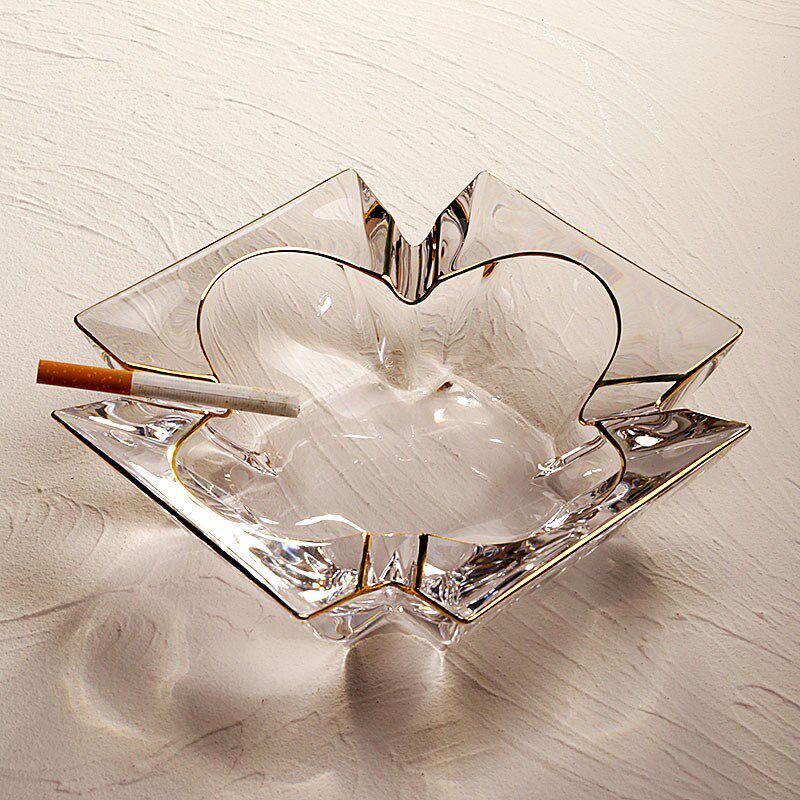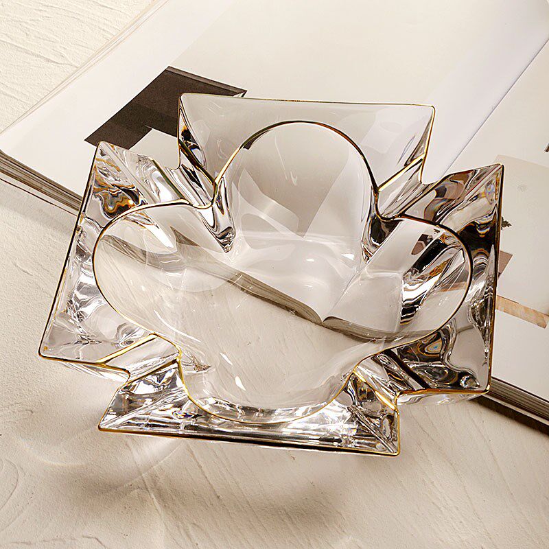 New gold-painted large crystal glass ashtray office home living room tea table ashtray light luxury trend decoration