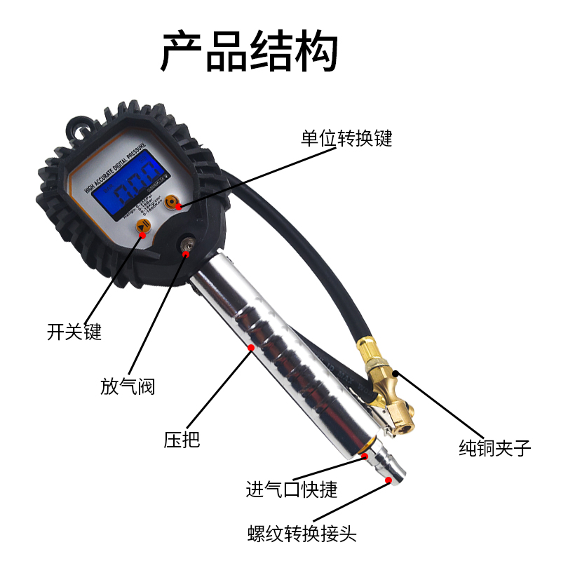 Digital Display Tire Pressure Gauge Air Pressure Gauge High Precision With Inflatable Car Tire Pressure Car Piezometer Cheer Gun-Taobao