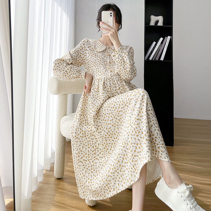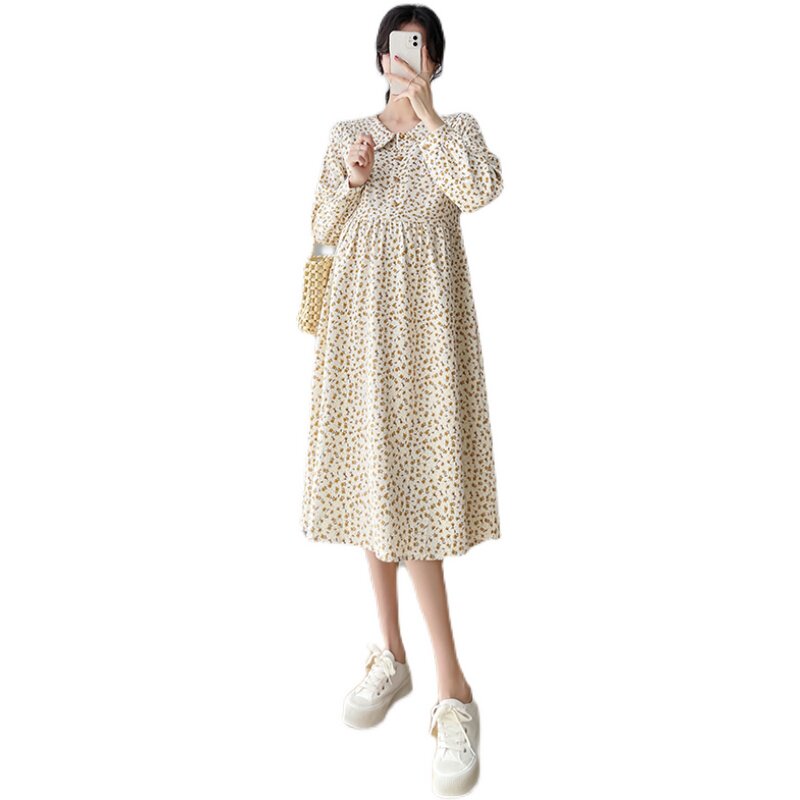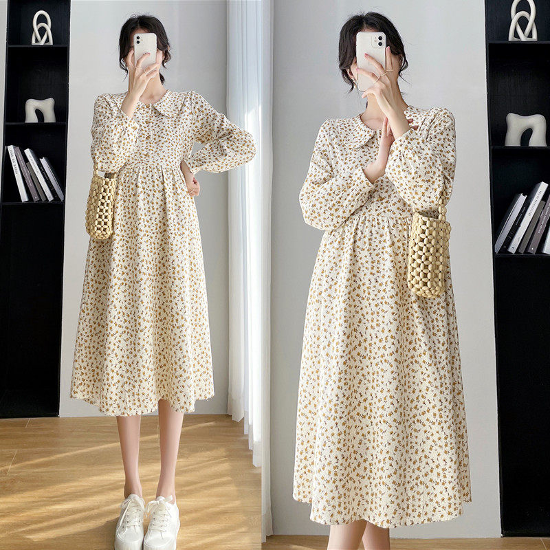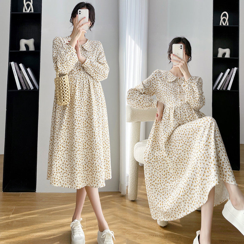 Spring 2022 new pregnant women dress net red fashion out printed long sleeve dress floral high waist skirt