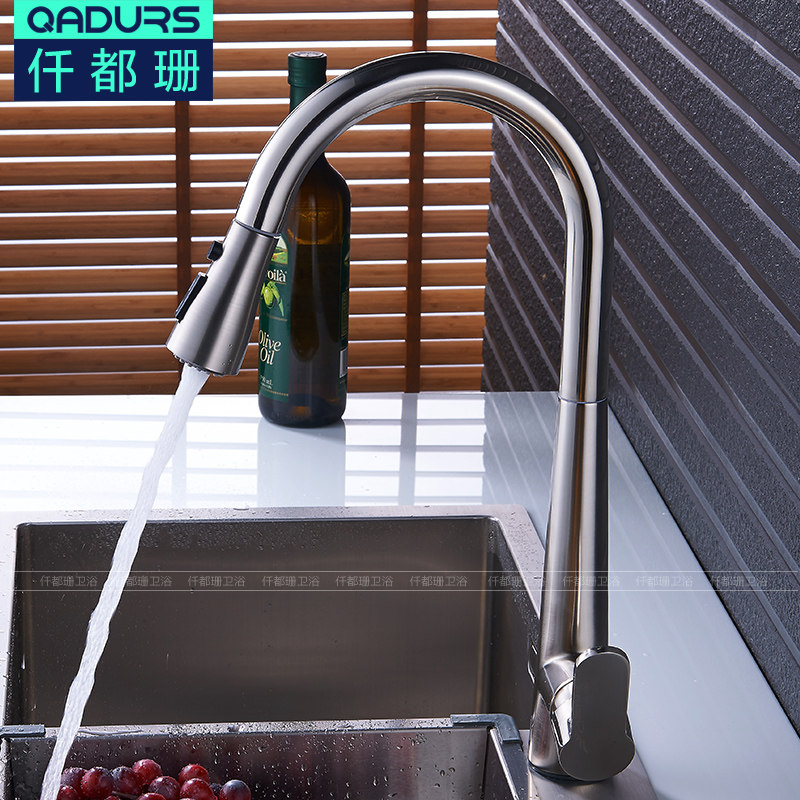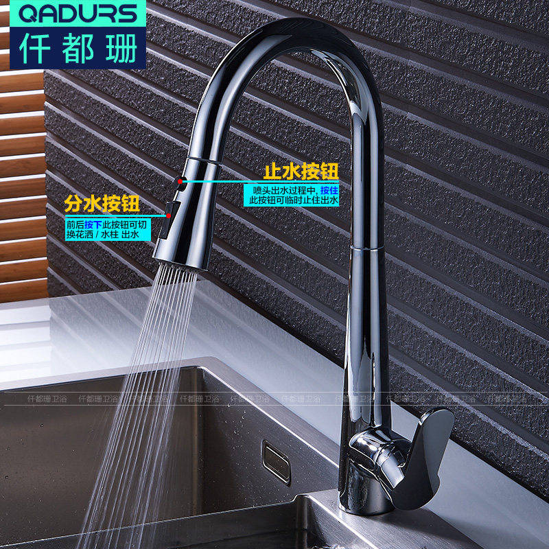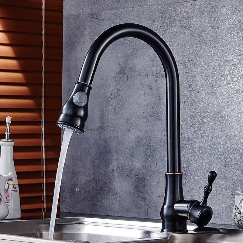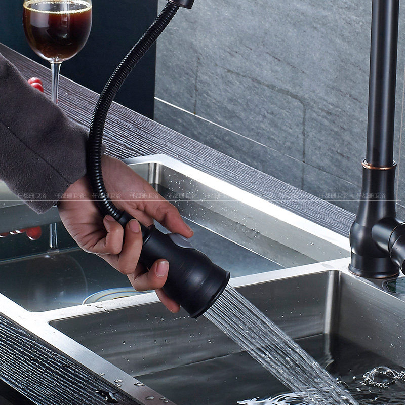 Nordic American black ancient copper pull-out kitchen hot and cold water faucet black vegetable basin sink stretch faucet
