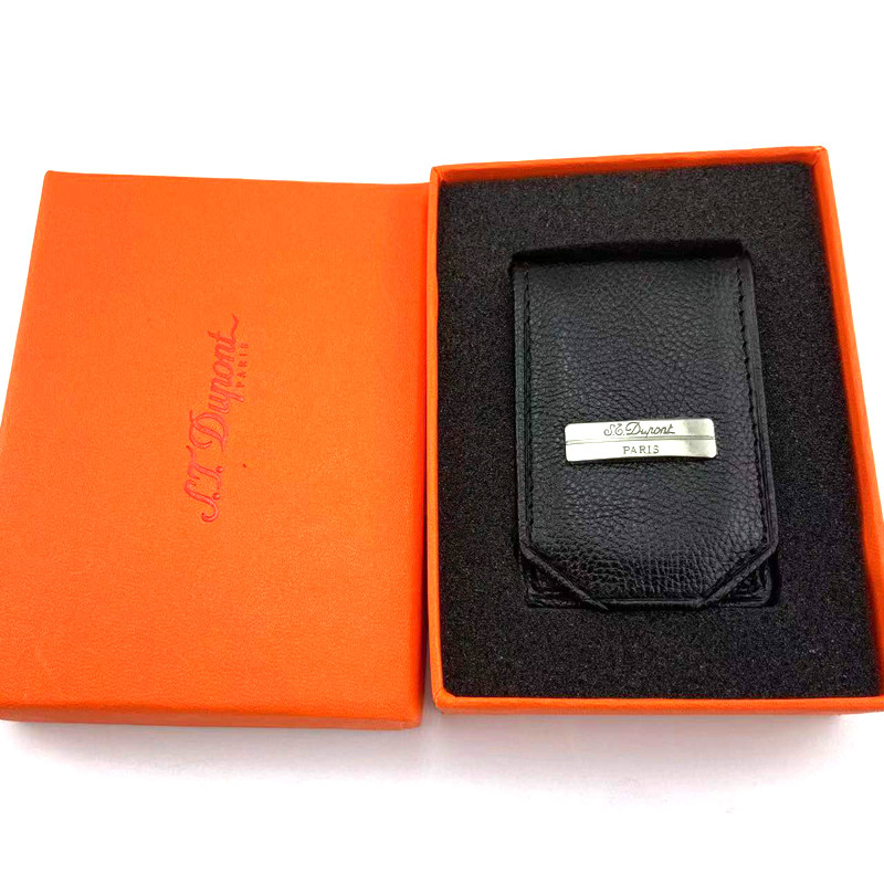 Original counter Dupont lighter leather case protective cover real cowhide royal black lychee pattern feels good L2