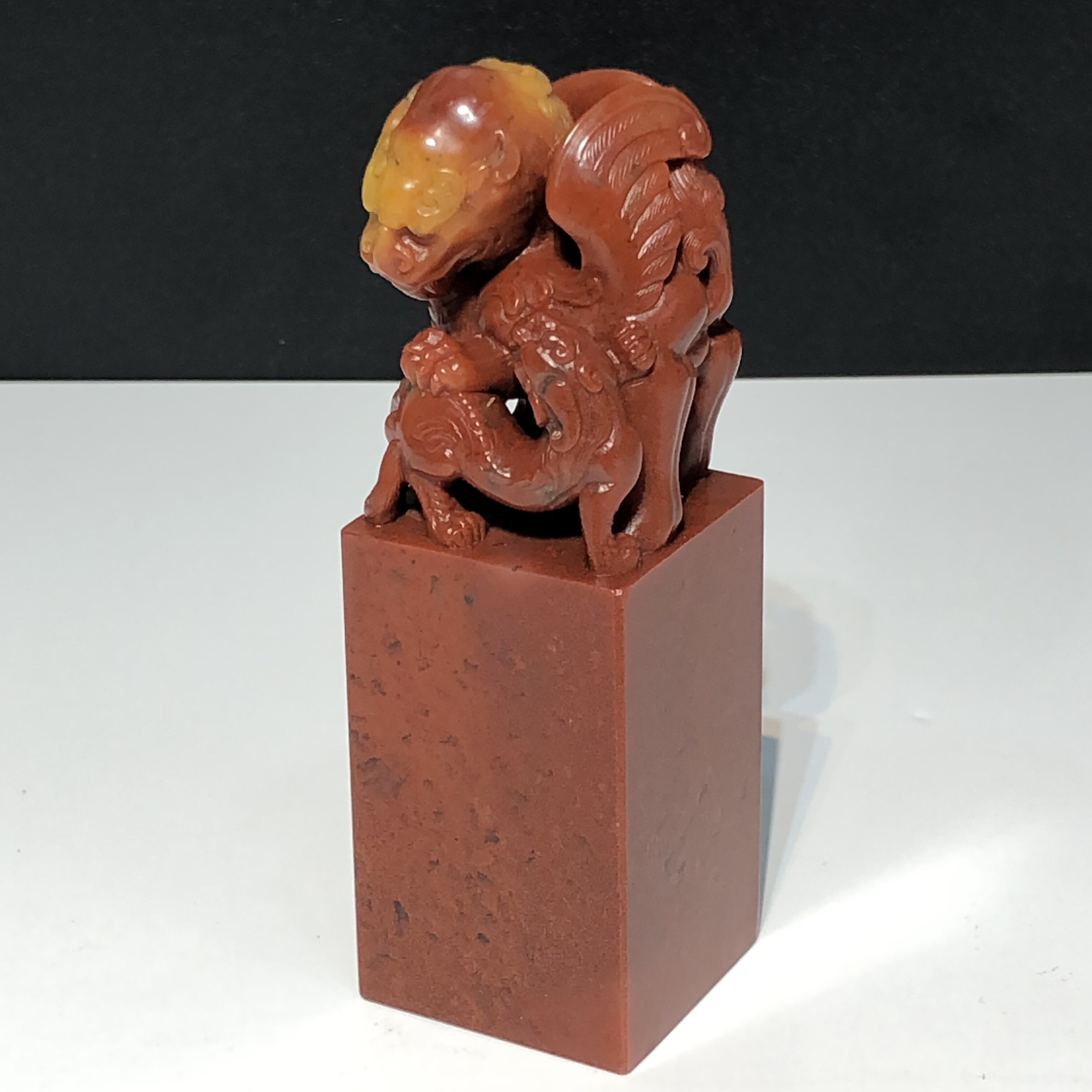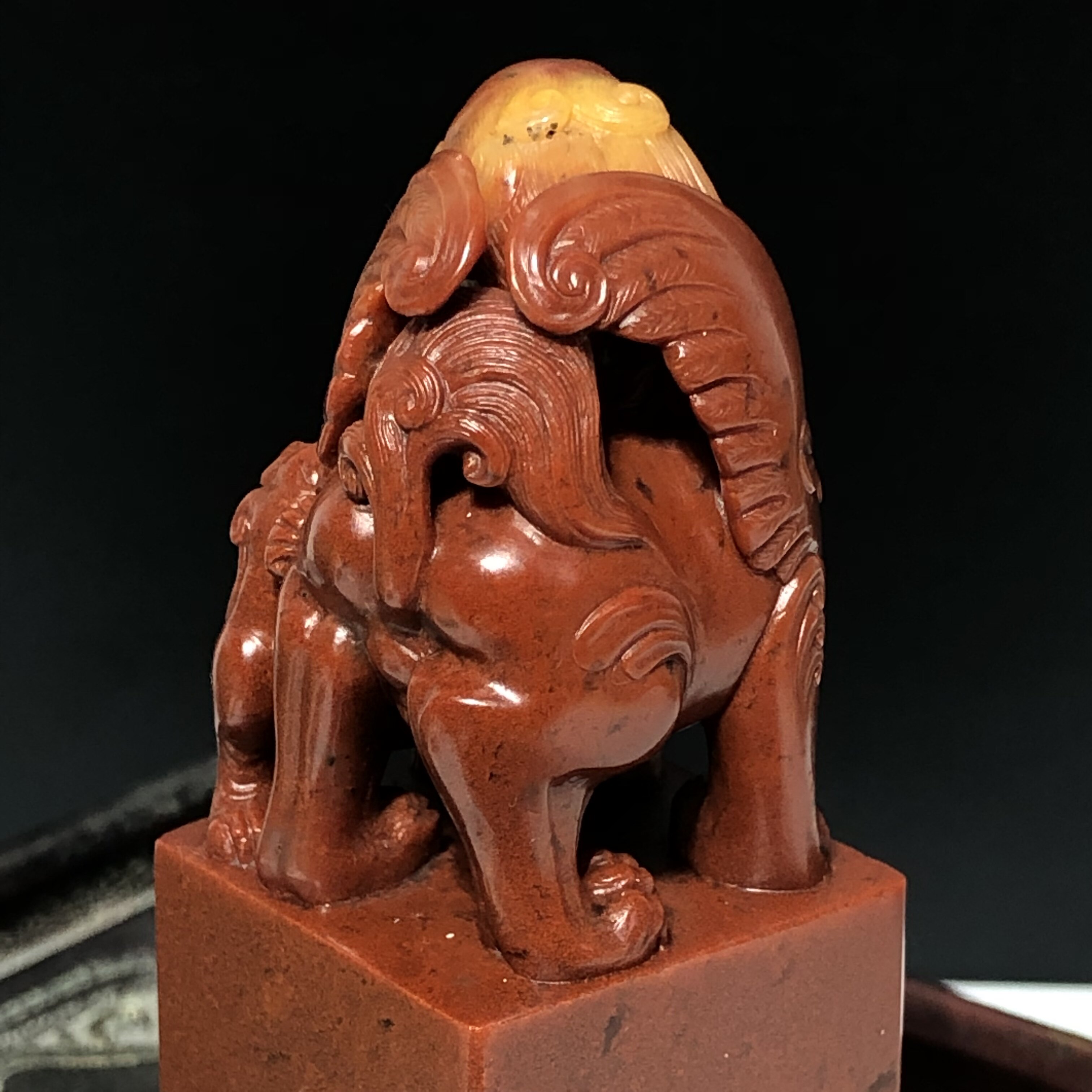 Boutique Shoushan stone seal Durin yellow coincidence Sand Ancient Beast button Zhangwen Play Collection Chishi Artwork Stone Carved Stone Carving